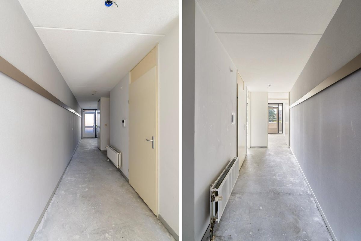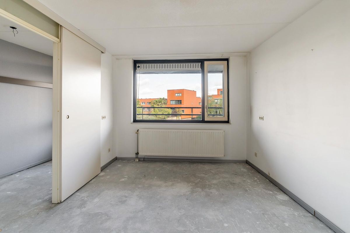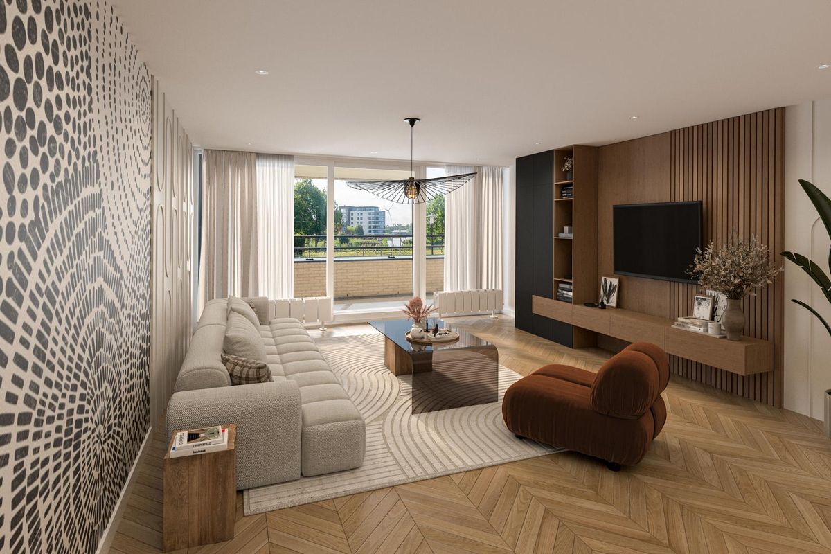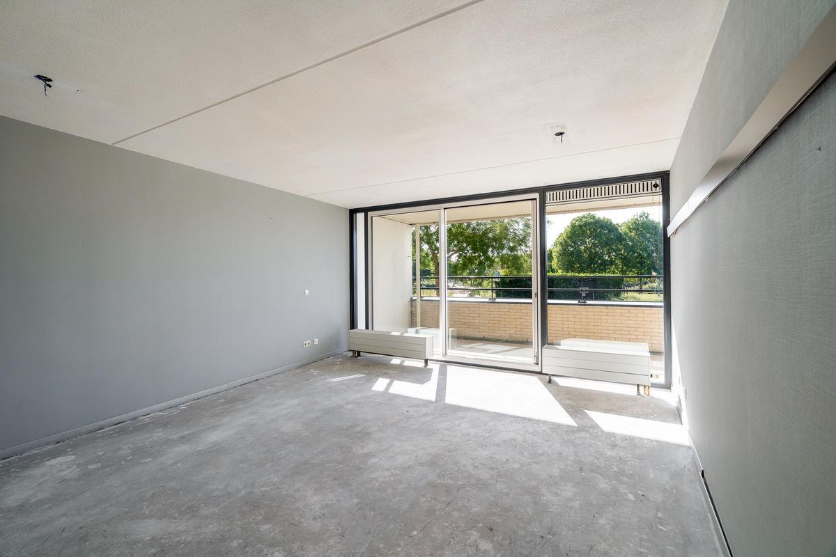De woonkamer is heerlijk licht dankzij de grote raampartijen en biedt via een schuifpui directe toegang tot het terras. De halfopen keuken in L-opstelling is voorzien van diverse inbouwapparatuur en biedt voldoende werk- en bergruimte. Het appartement beschikt over twee slaapkamers: één royale kamer aan de achterzijde en een tweede slaapkamer aan de terraszijde, die tevens zeer geschikt is als werkkamer of logeerkamer. De volledig betegelde badkamer is uitgevoerd in een lichte kleurstelling en voorzien van een ruime douche en wastafel.