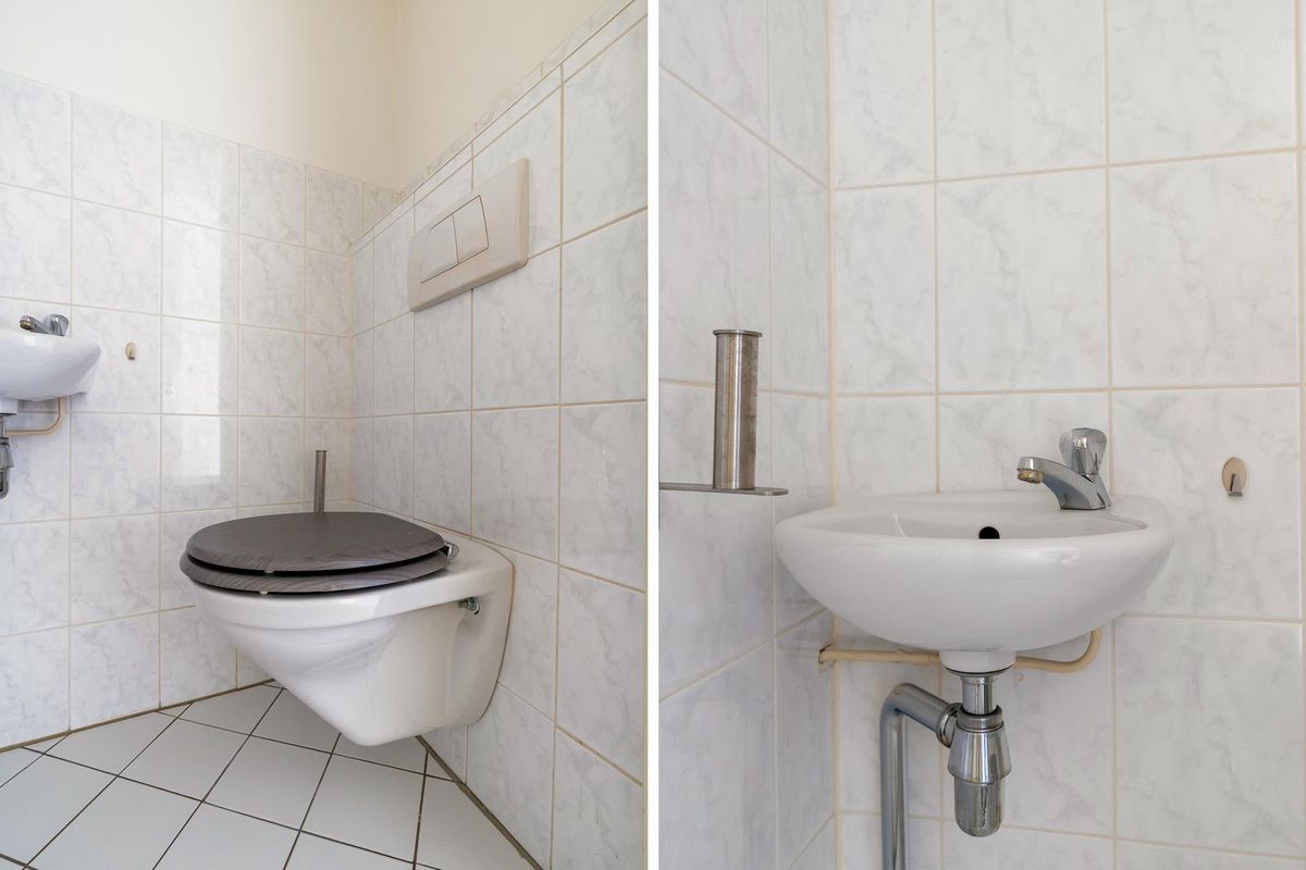 In de hal bevindt zich een praktische berging met aansluitingen voor de was-apparatuur en extra opbergruimte.
