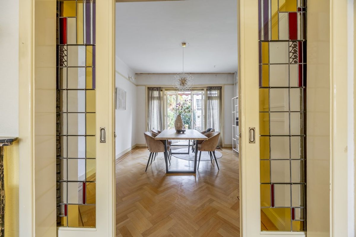 Iedereen die voor deze woning kiest, is in voor een heerlijke mix van historie, sfeer en comfort. Gebouwd in 1930 – een periode waarin huizen nog werden opgetrokken met aandacht voor detail én gevoel voor stijl – straalt deze tussenwoning alvast de nostalgie uit die deze wijk zo typeert. De originele glas in lood deuren en visgraat parketvloer van de kamer en suite stralen karakter uit, net als die prachtige hoge plafonds. De granito vloeren voegen een vleugje nostalgie toe aan het geheel. De ruime indeling zorgt ervoor dat je alle kanten op kunt met de inrichting. Op de eerste etage is zeer recent glasisolatie aangebracht.