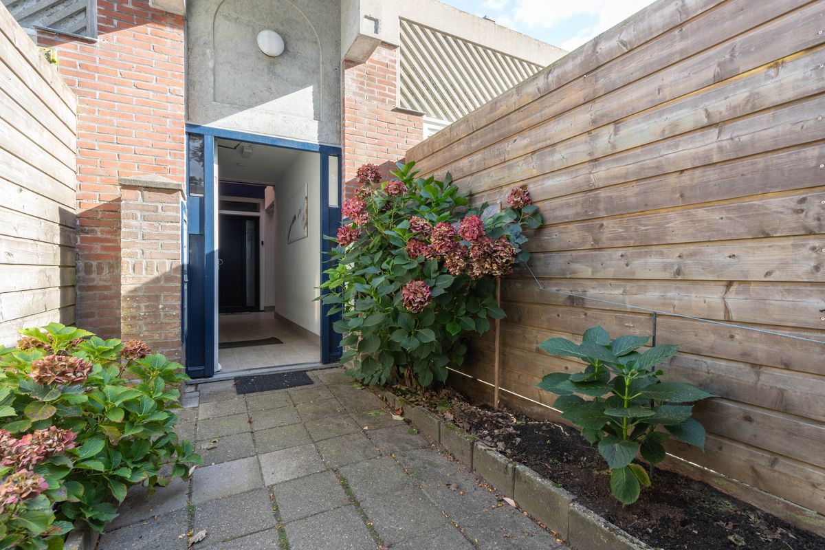 Via de poort bereikt u de entree van het gebouw, waar de brievenbussen netjes zijn geplaatst. Binnen treft u een verzorgde gemeenschappelijke entree die u deelt met slechts drie buren. Hier bevinden zich ook de meterkasten en vanuit deze ruimte heeft u toegang tot de appartementen.