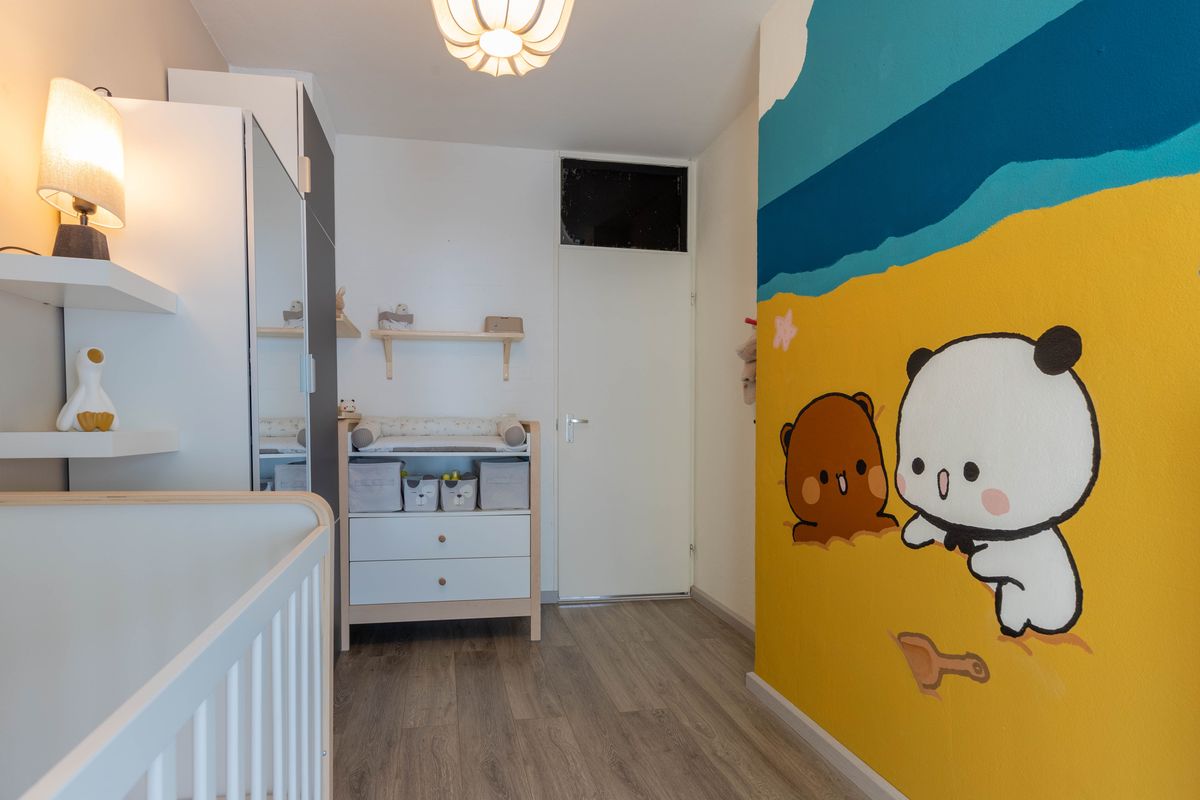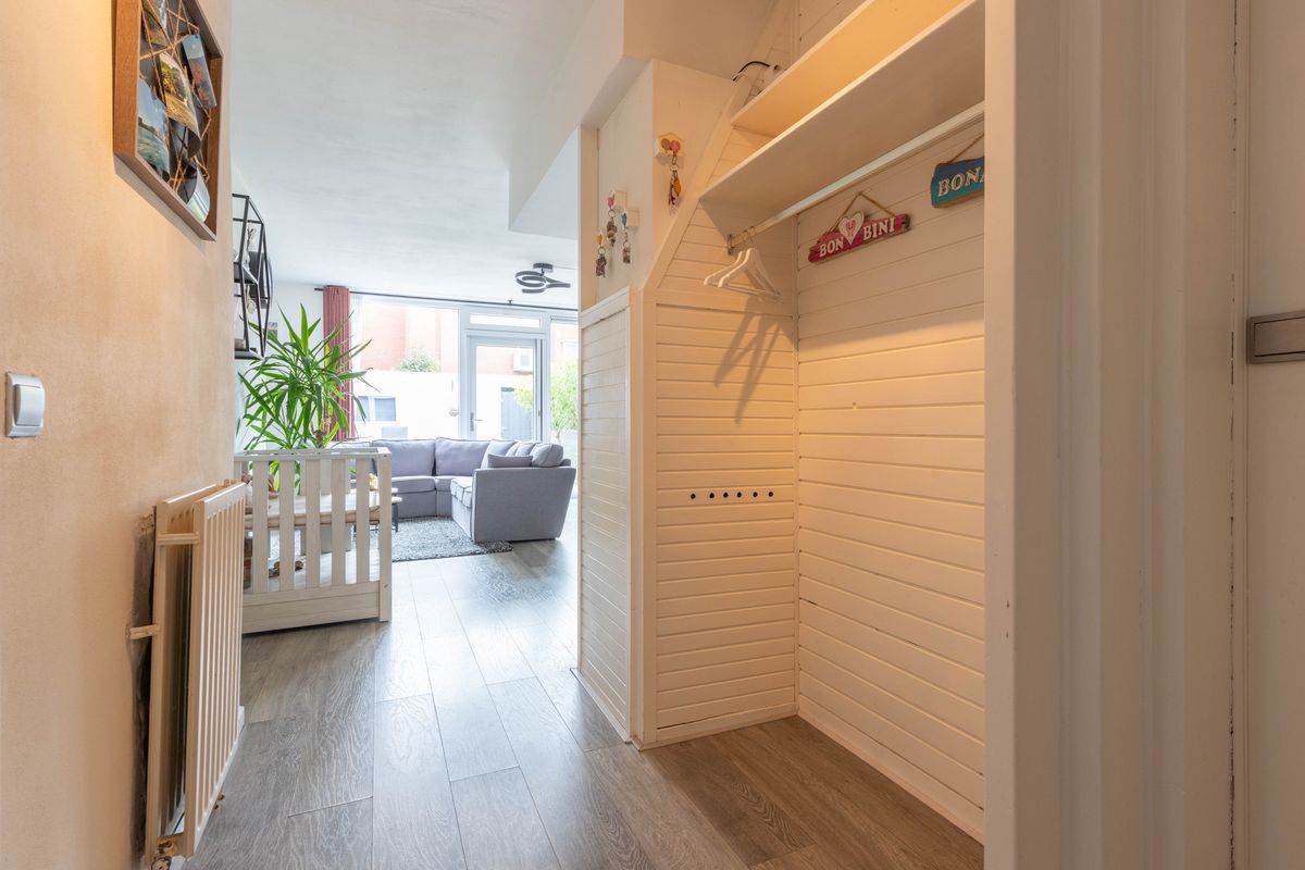 De hal geeft toegang tot alle vertrekken. De geheel betegelde badkamer (gerenoveerd in 2020) is praktisch en compleet ingericht met een toilet (hang), inloopdouche, wastafelmeubel en een aansluiting voor de wasmachine en droger.