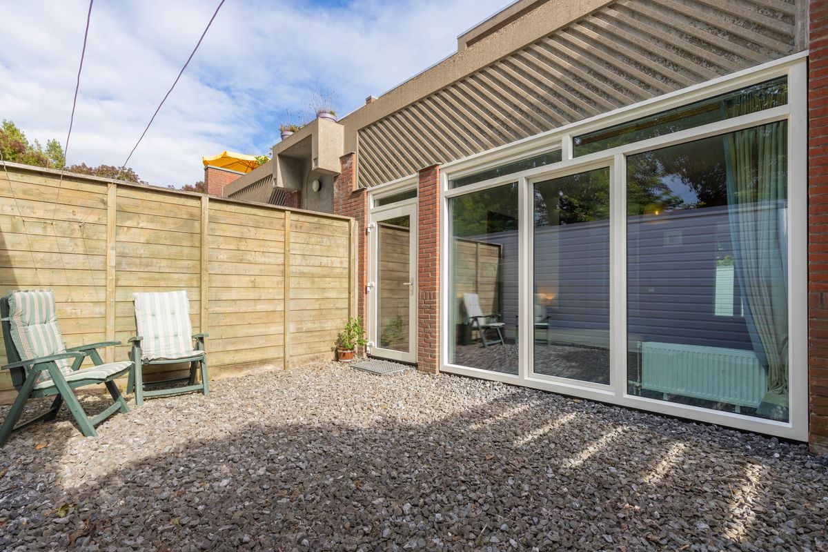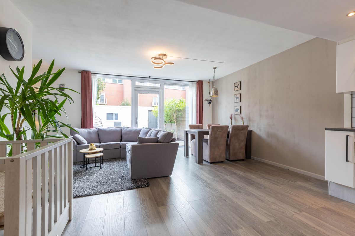 De lichte woonkamer met grote ramen biedt uitzicht en toegang tot de achtertuin. Deze zonnige tuin (zuidoosten) is een echte plus: voorzien van sierbestrating, buitenkraan, berging met elektra en achterom. Hier kun je de hele dag door van de zon genieten!