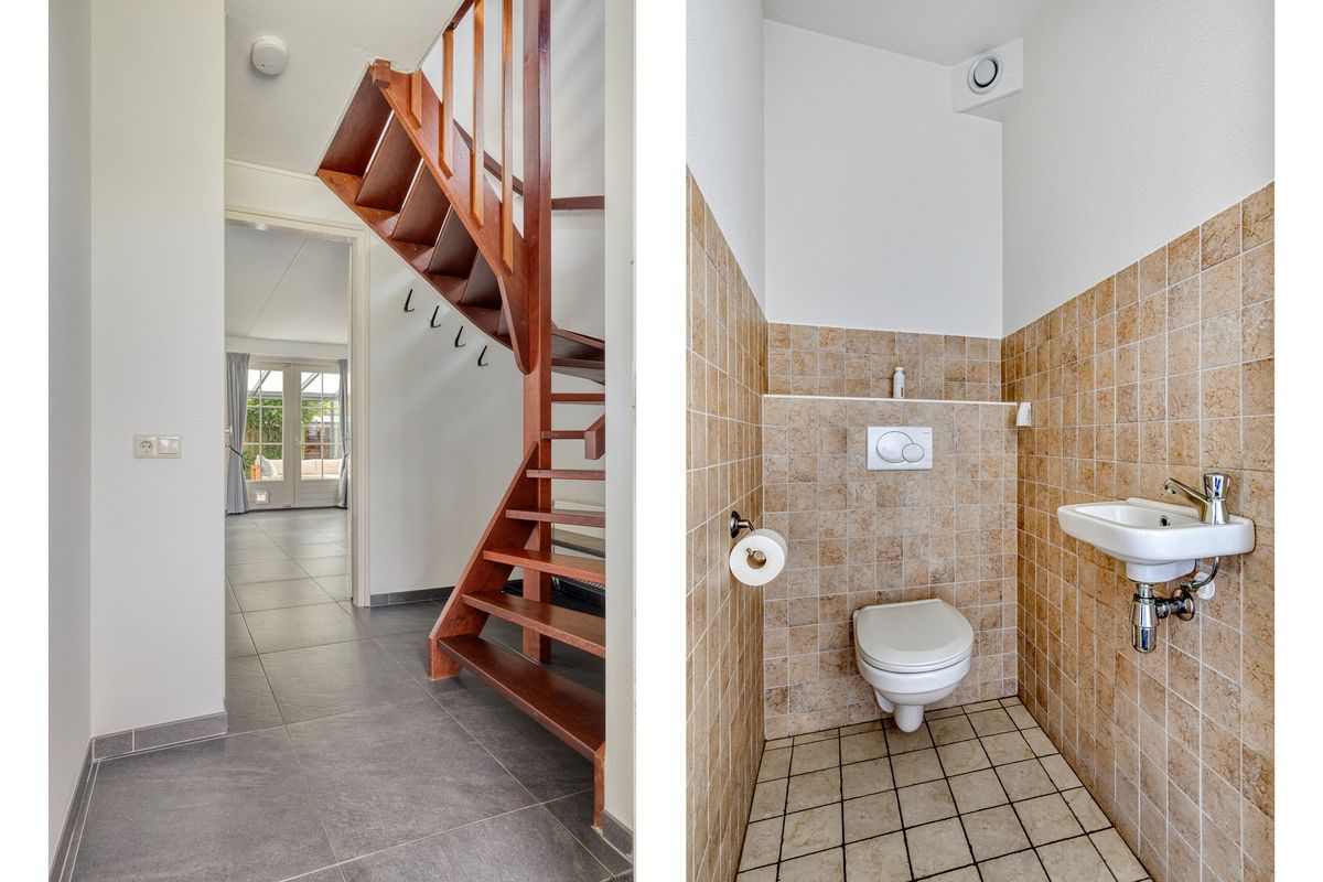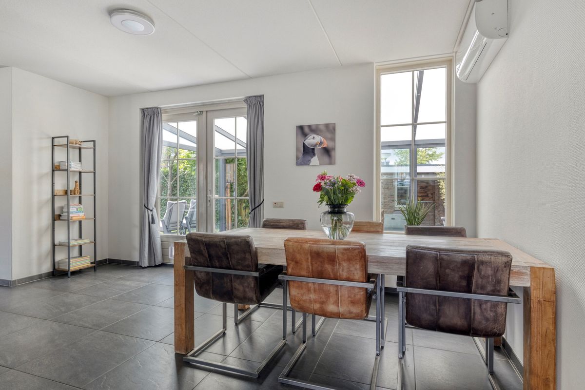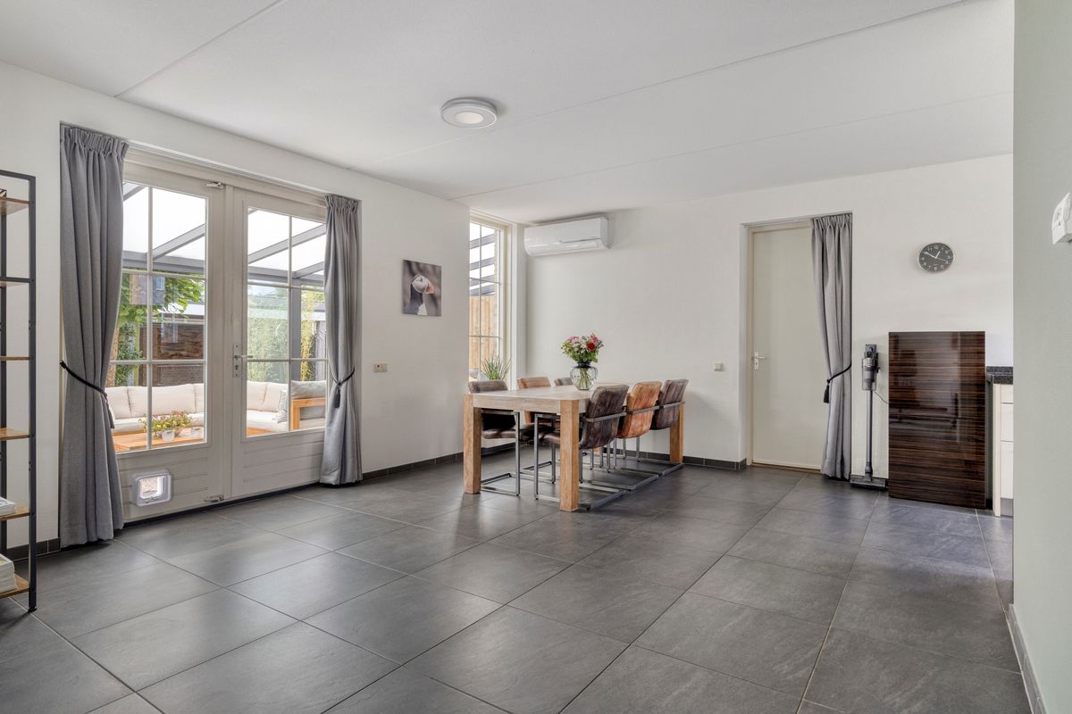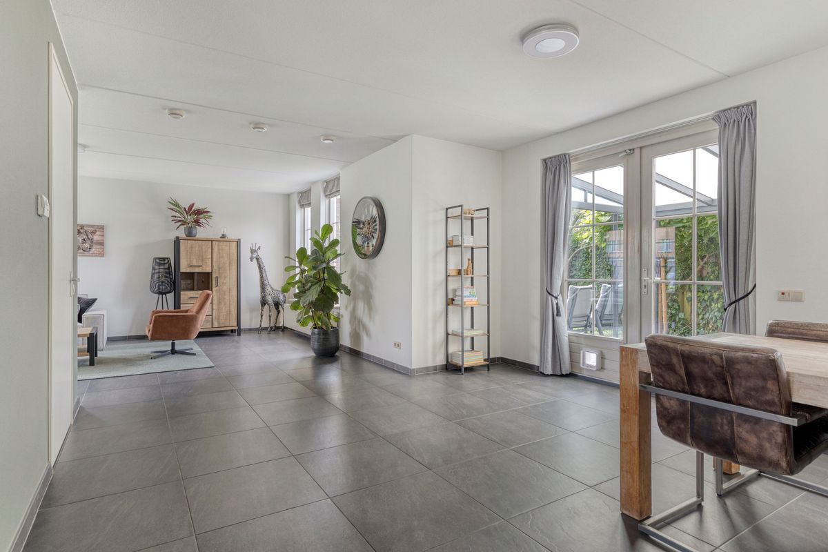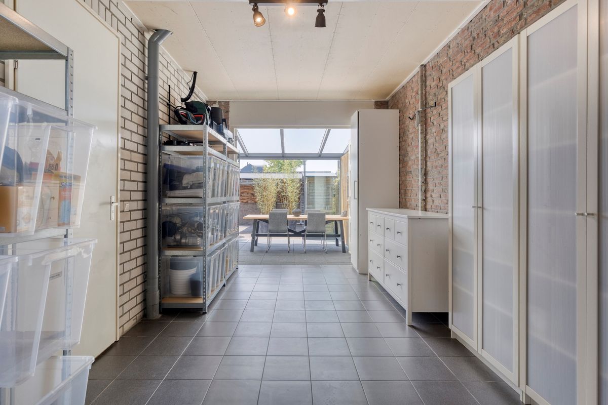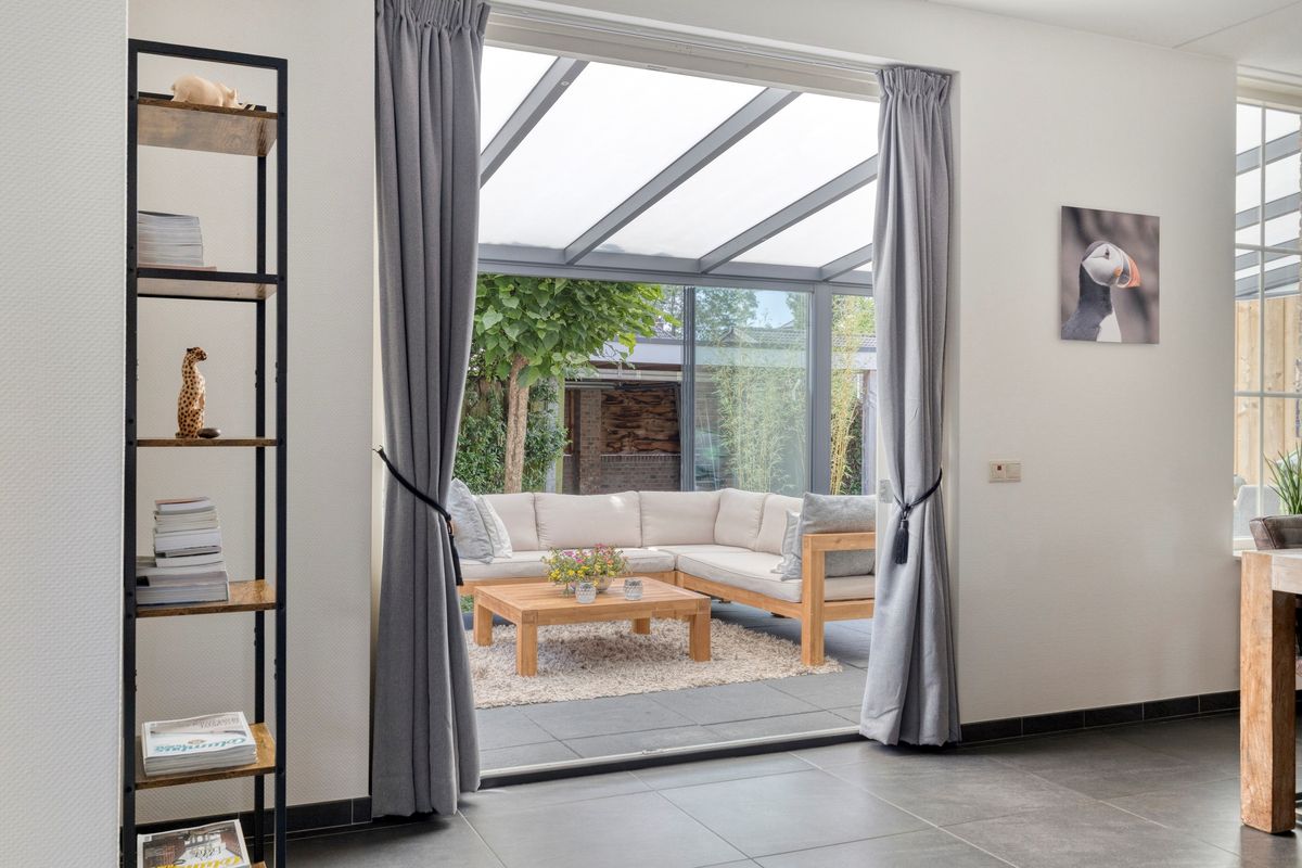 De net aangelegde en onderhoudsvriendelijke achtertuin, gelegen op het zuidwesten, biedt volop zon, maar ook voldoende schaduw, en privacy door de fijne hoekligging. Een heerlijk verlengstuk van de woning is de fraaie serre welke beschikt over een sfeervolle plek om te dineren of om te genieten op de lounge set. De gehele serre is af te sluiten middels de glazen schuifpuien, hierdoor is dit de ideale plek om in alle seizoenen te ontspannen. Daarnaast loop je direct vanuit de serre naar de carport mét elektrische deur, waar de auto comfortabel en veilig geparkeerd kan worden.