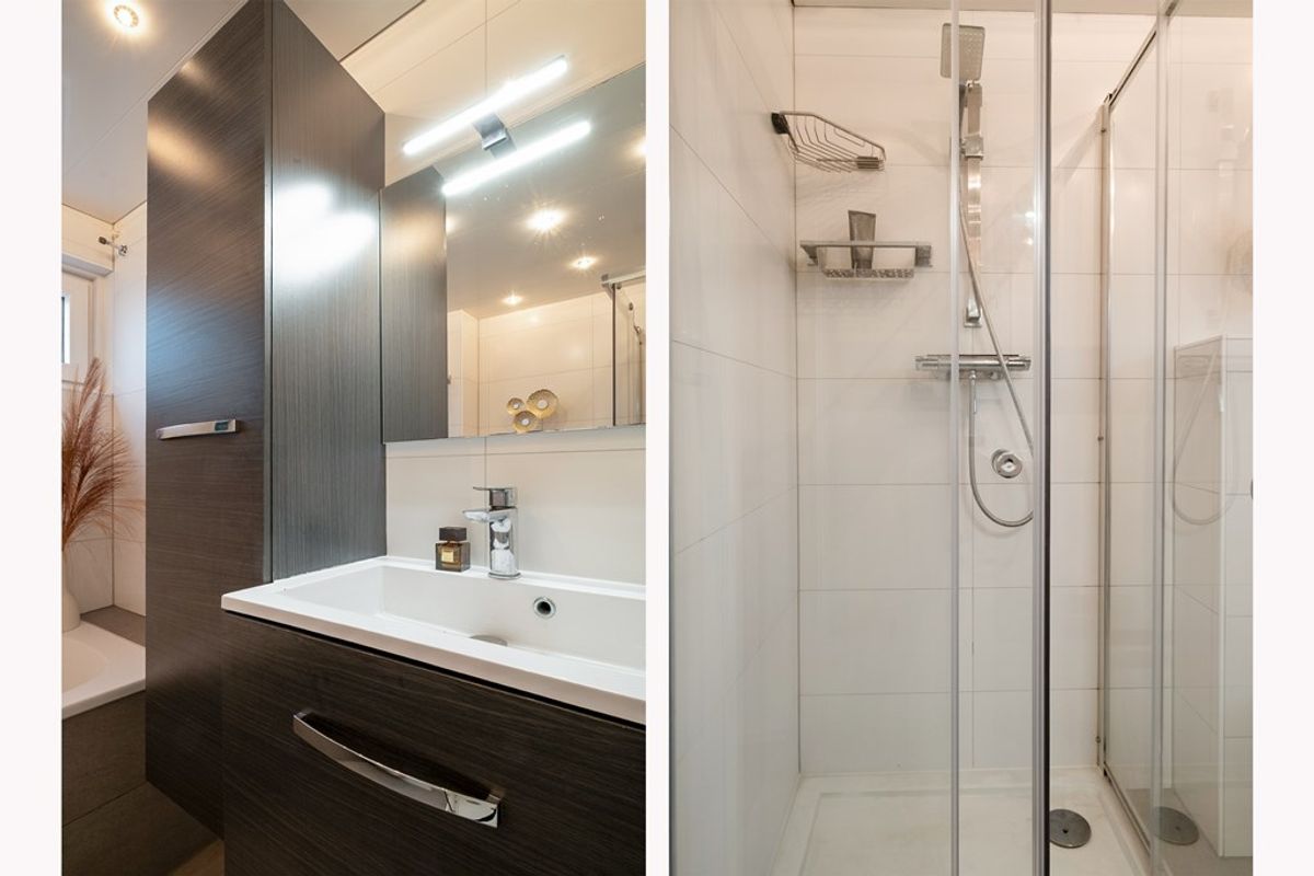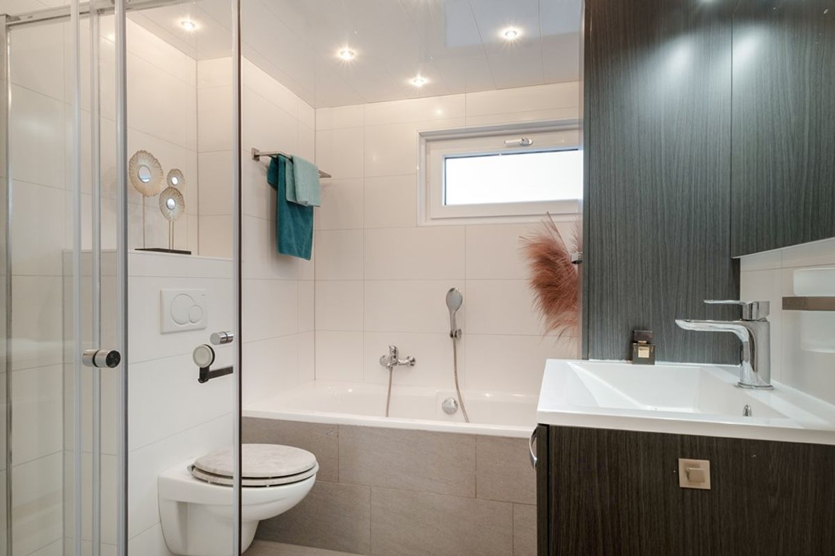 Op de eerste verdieping bevinden zich drie slaapkamers en de badkamer. De badkamer is compleet en comfortabel ingericht met een douchecabine, ligbad, wastafelmeubel en een hangend toilet. Hoe prettig is het om hier zowel snel te kunnen douchen als rustig in bad te ontspannen. De slaapkamers zijn praktisch van formaat en daardoor ideaal als slaap-, werk- of kinderkamer.