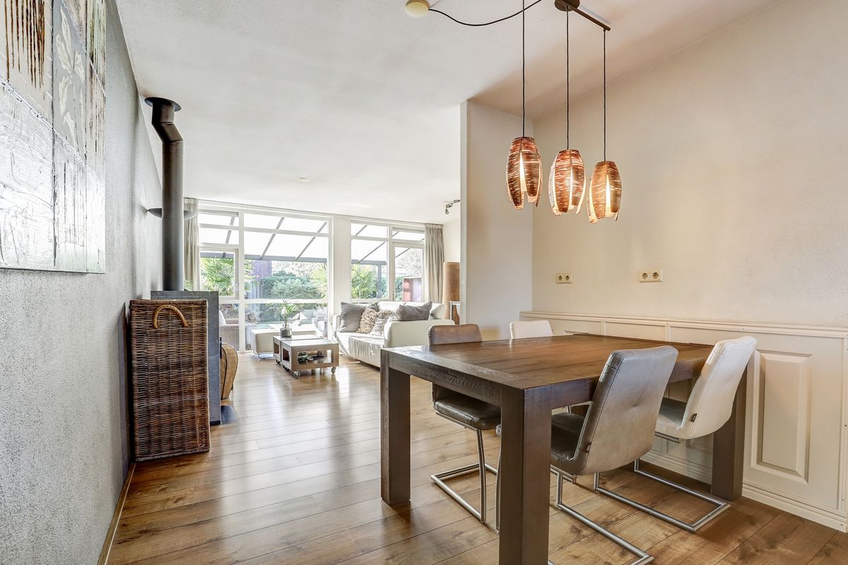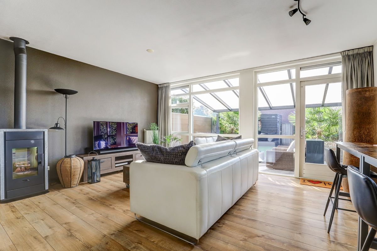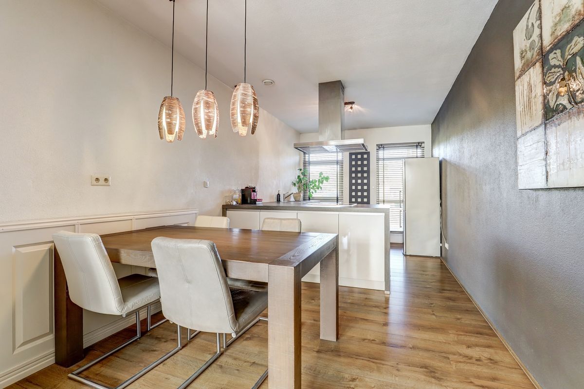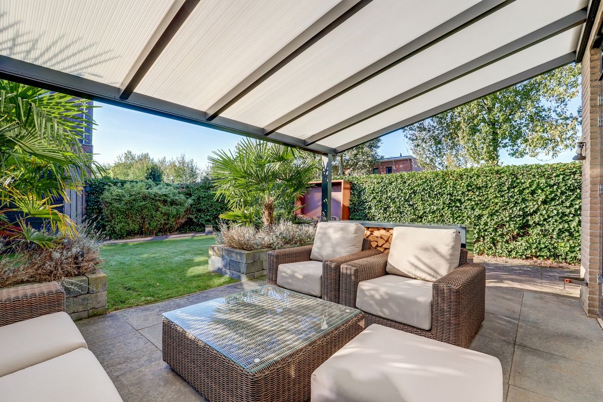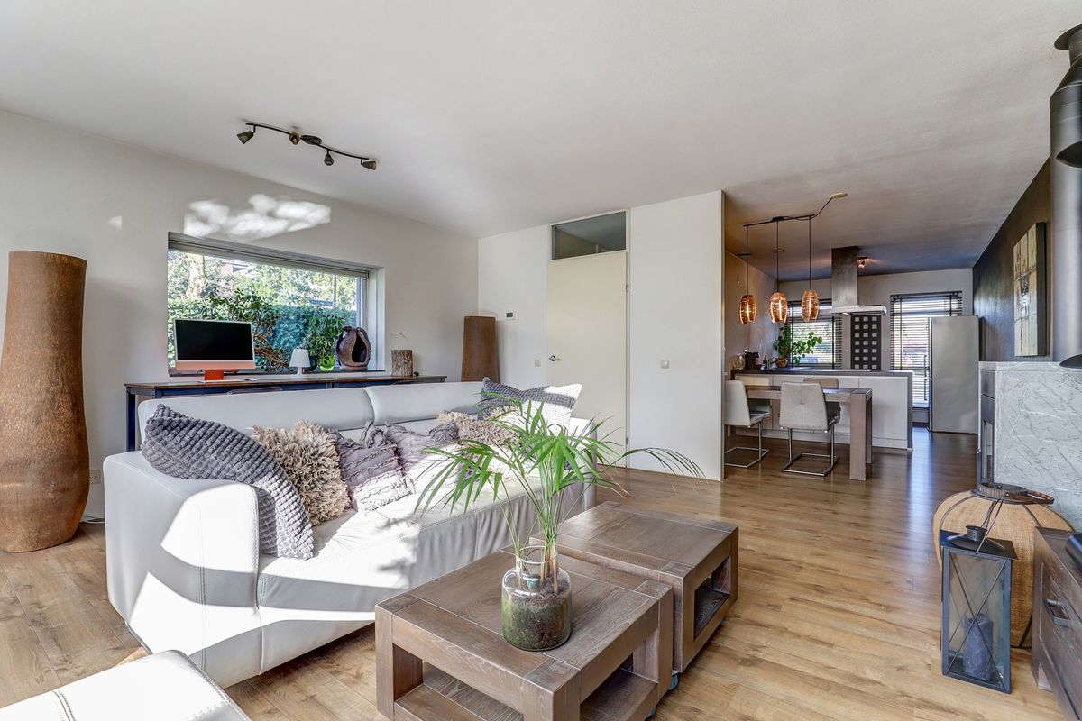 Vanuit de zeer ruime en lichte woonkamer heb je een fijn zicht op de prachtig aangelegde achtertuin en door het raam in de zijgevel ook op de zijtuin. Zowel in de tuin als in de woonkamer is er nagenoeg geen inkijk van achterliggende huizen, dus optimale privacy. Aan de voorzijde van de woning is de moderne woonkeuken geplaatst voorzien van inductiekookplaat, afzuigkap, vaatwasser en combi oven.