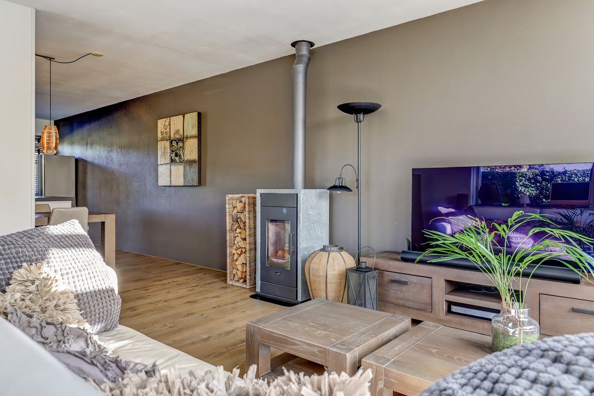 Precies op deze perfecte plek is nu deze heerlijk lichte hoekwoning beschikbaar. Met een achtertuin op het zuiden met terrasoverkapping en een dakterras op de eerste verdieping is er alle gelegenheid om van het buitenleven te genieten. Is het in de winter buiten kouder dan is het binnen ook goed toeven. Het licht komt dan ruimschoots binnen door de grote raampartijen in de achter- en zijgevel. Er is een gezellige speksteenkachel waarin je een sfeervol vuur aan kunt steken. En met een energielabel A hoef je je geen zorgen te maken over de energierekening.