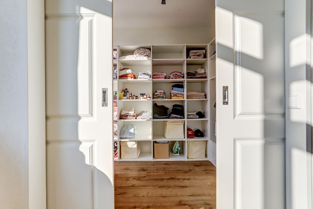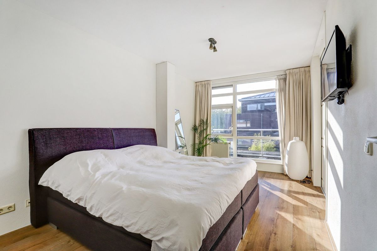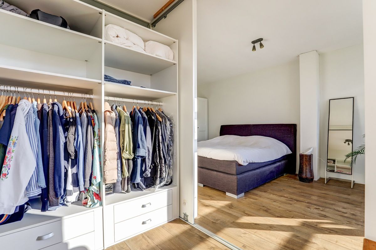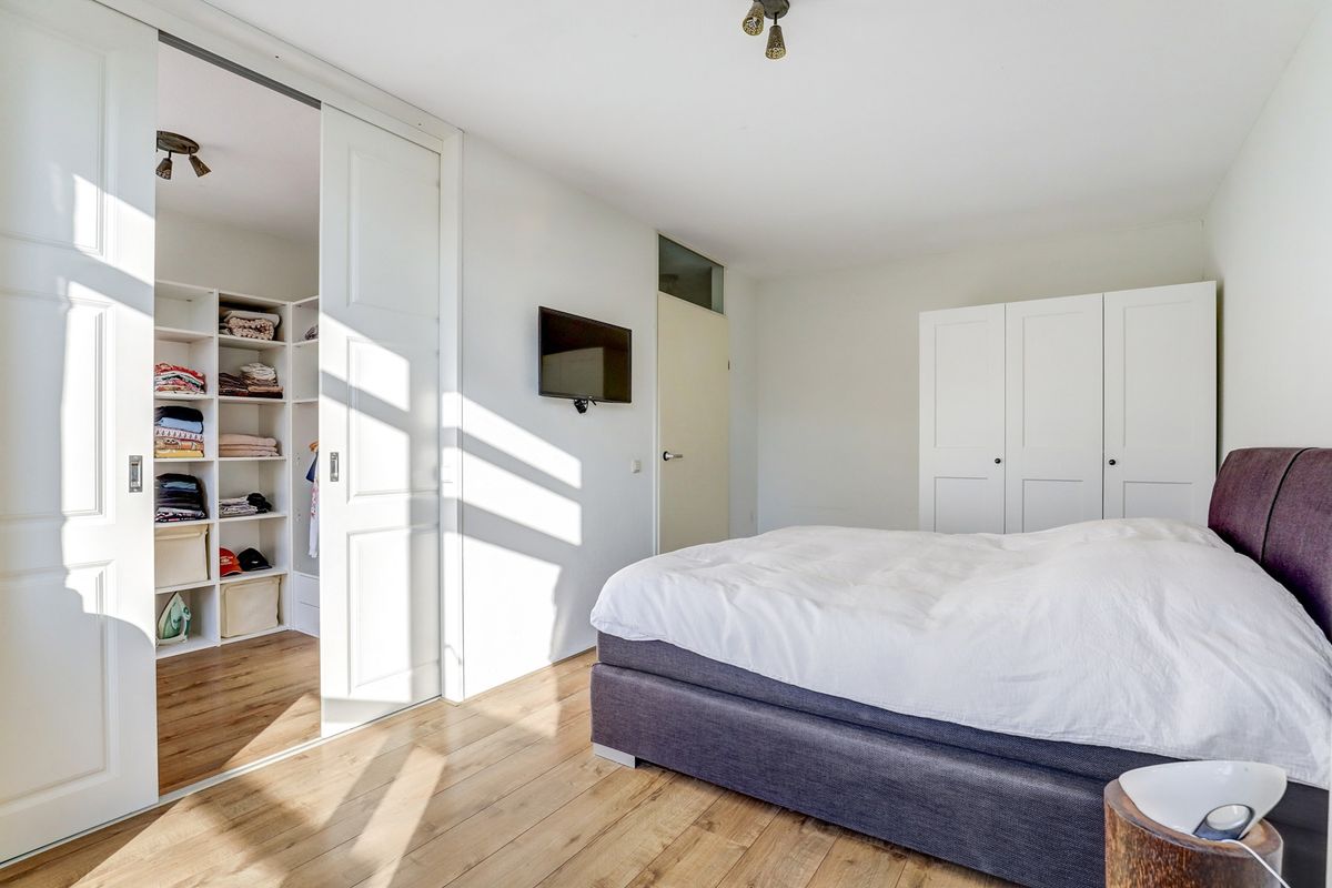 De grote slaapkamer aan de achterzijde is met dubbele schuifdeuren verbonden met de kleine slaapkamer welk nu in gebruik is als walk-in closet. De deur van de kleine slaapkamer naar de overloop is nu niet in gebruik maar dit is eenvoudig te herstellen wanneer de kamer weer als slaapkamer dienst moet doen. Beide kamers zijn heel licht door de grote ramen. Ook is hier een deur naar het dakterras.