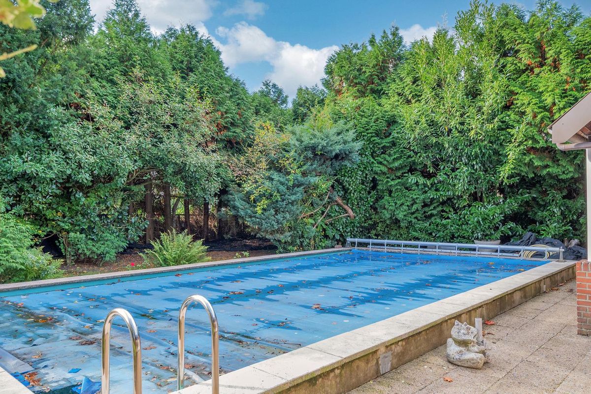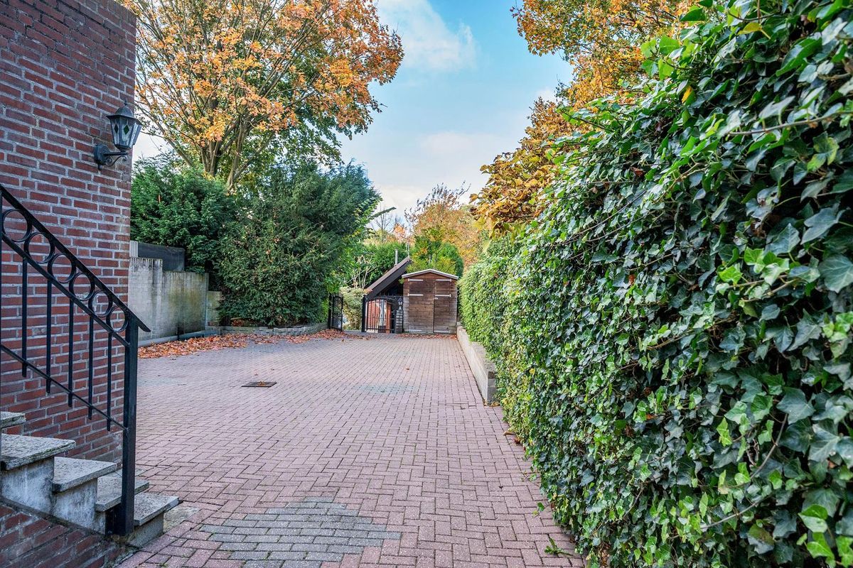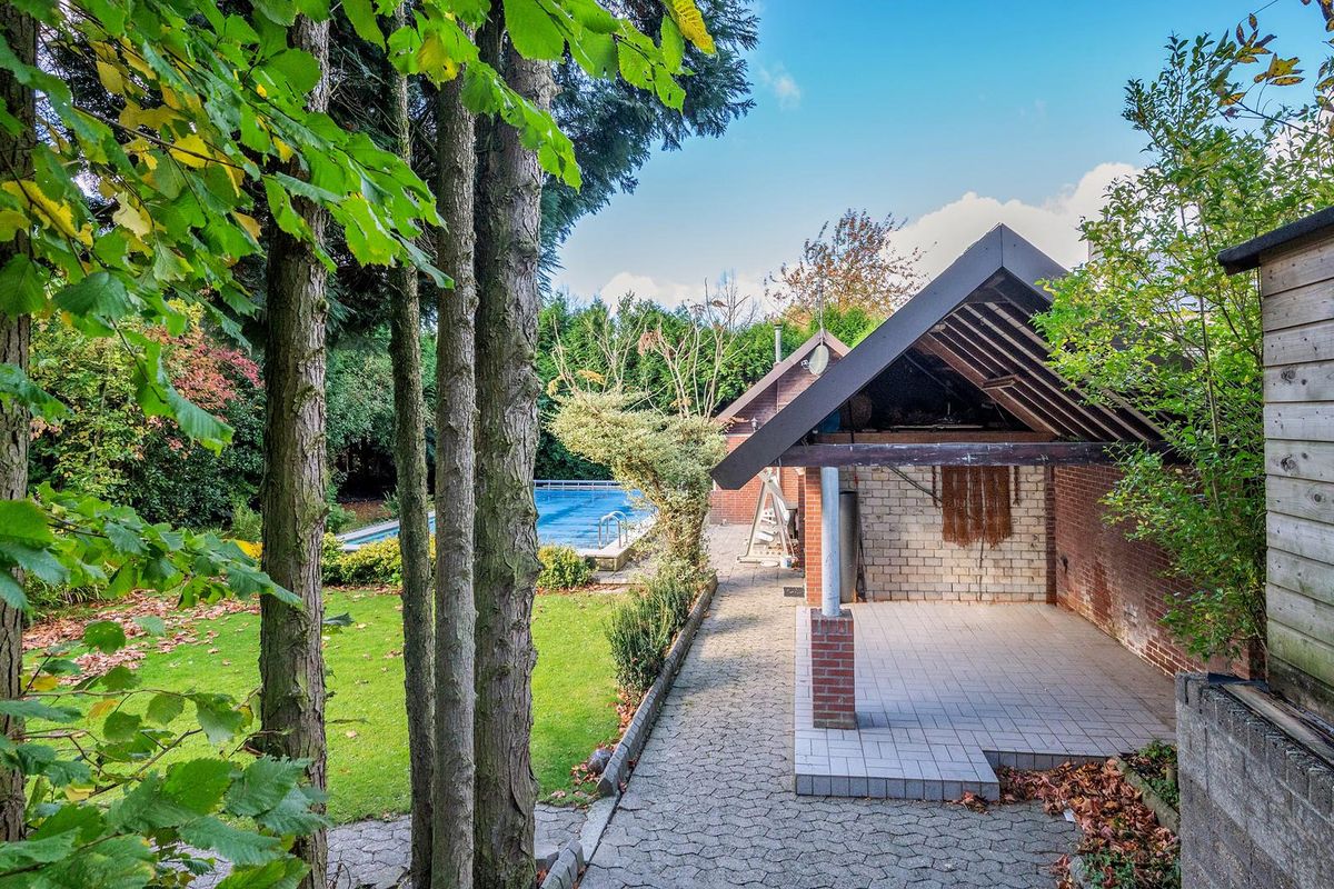 Vanuit de ruime oprit naar beneden is een groot beklinkerd parkeer en speeldeel bereikbaar waar tevens een tuinhuisje is gelegen. Vanuit dit gedeelte is de geheel omheinde grote achtertuin bereikbaar welk voorzien is van veel groen en een groot verwarmbaar zwembad (10x 5 meter). De tuin biedt zeer veel privacy door de groenvoorziening. In combinatie met de tuinwoning krijg je hier een waar vakantiegevoel.