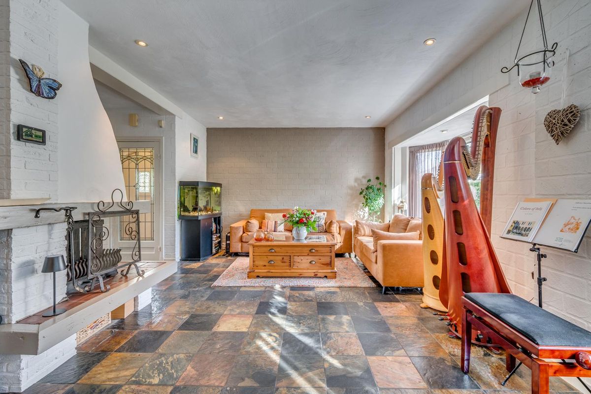 Vanuit de woning naar beneden en vanuit de eigen ingang aan de zijkant van de woning, als vanuit de oprit naar beneden middels de garagepoort en een separate achterdeur is de garage de feestruimte en kelder/opslagruimte bereikbaar. Deze grote ruimte bied veel mogelijkheden en wordt nu gebruikt als feestruimte met eigen barvoorziening en eigen toiletruimte. Tevens is er een royale opslagruimte en is er de mogelijkheid om een auto in de garage te stallen. De sectionaalpoort is op afstand bedienbaar.