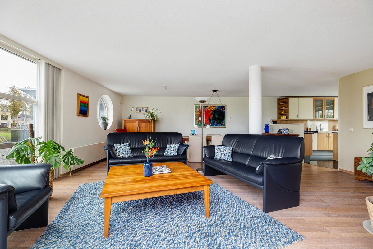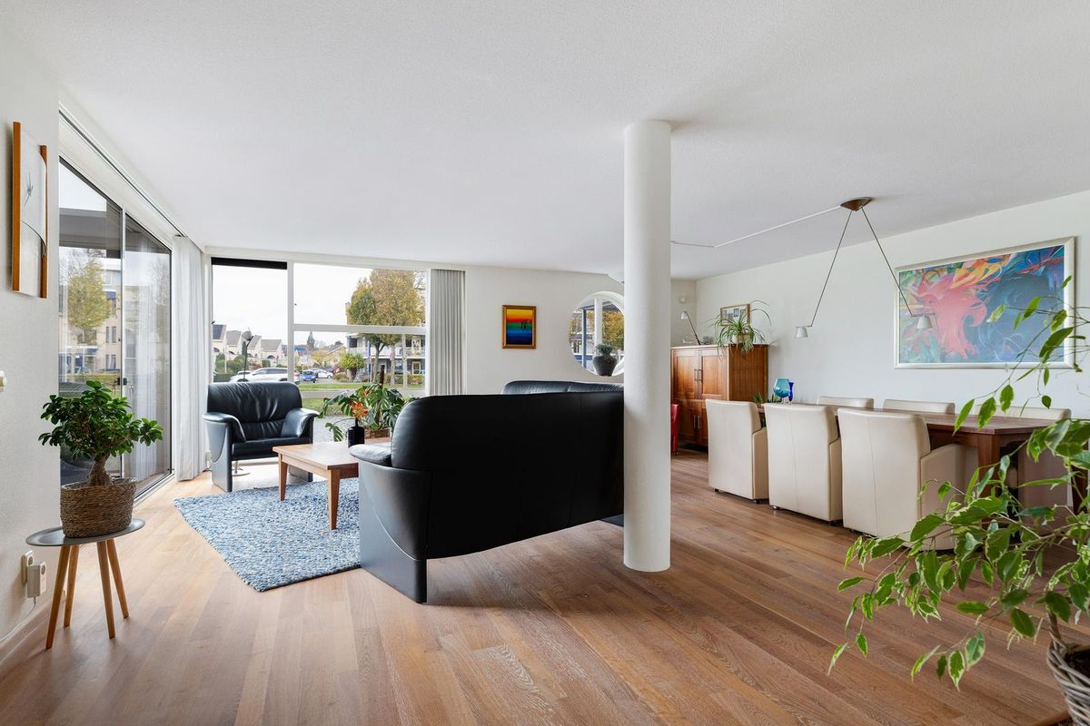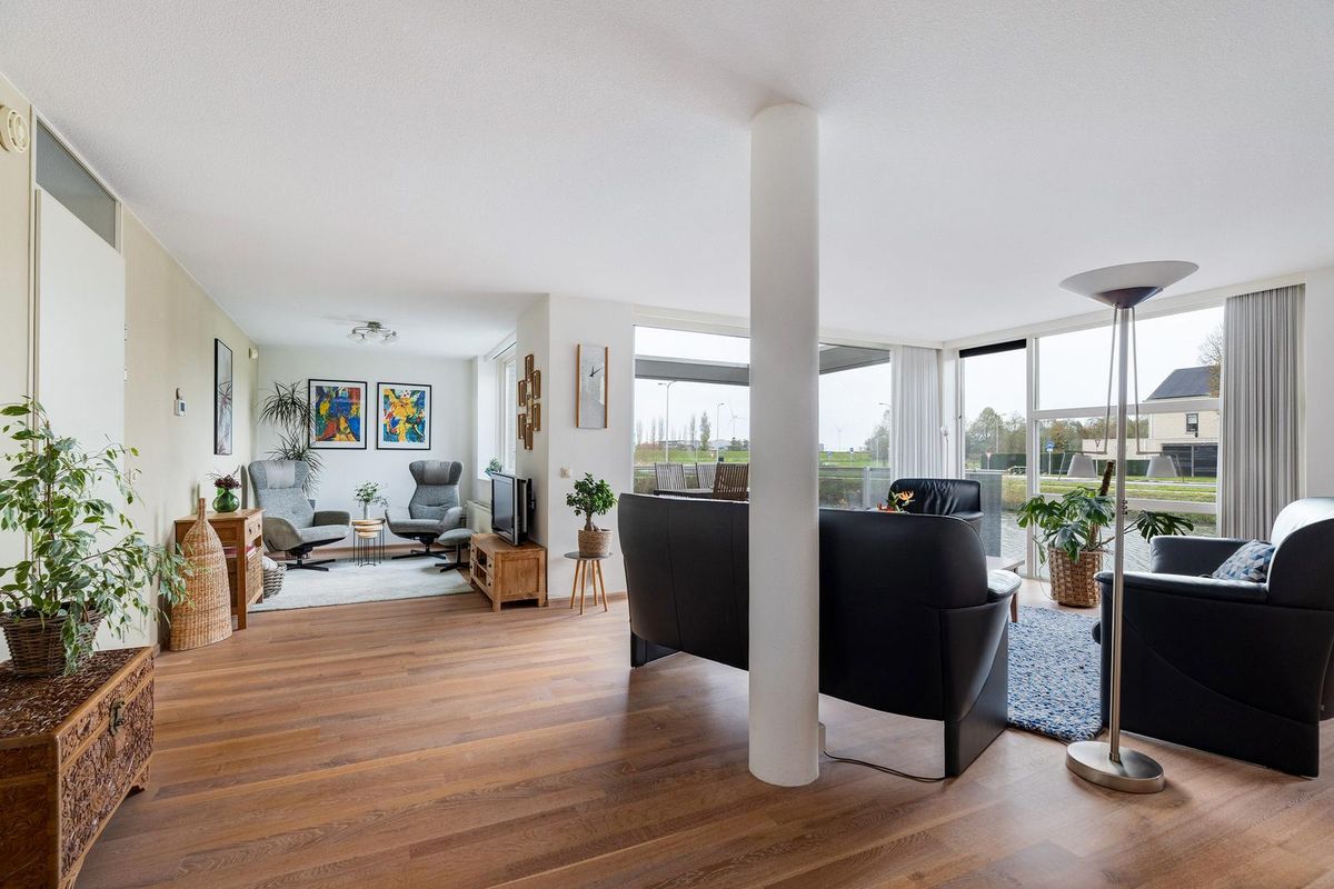- Zeer lichte woonkamer met grote raampartijen en schuifpui