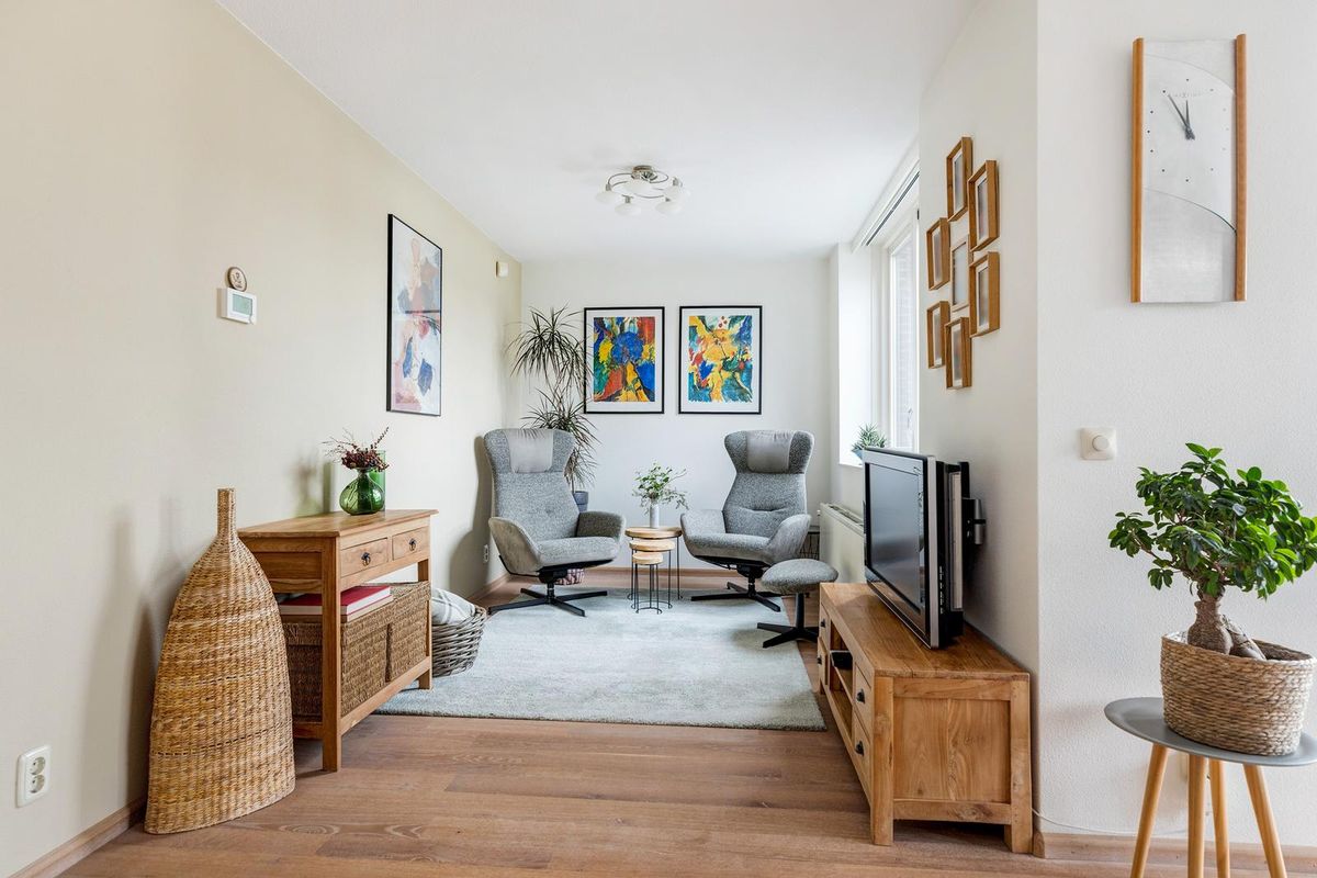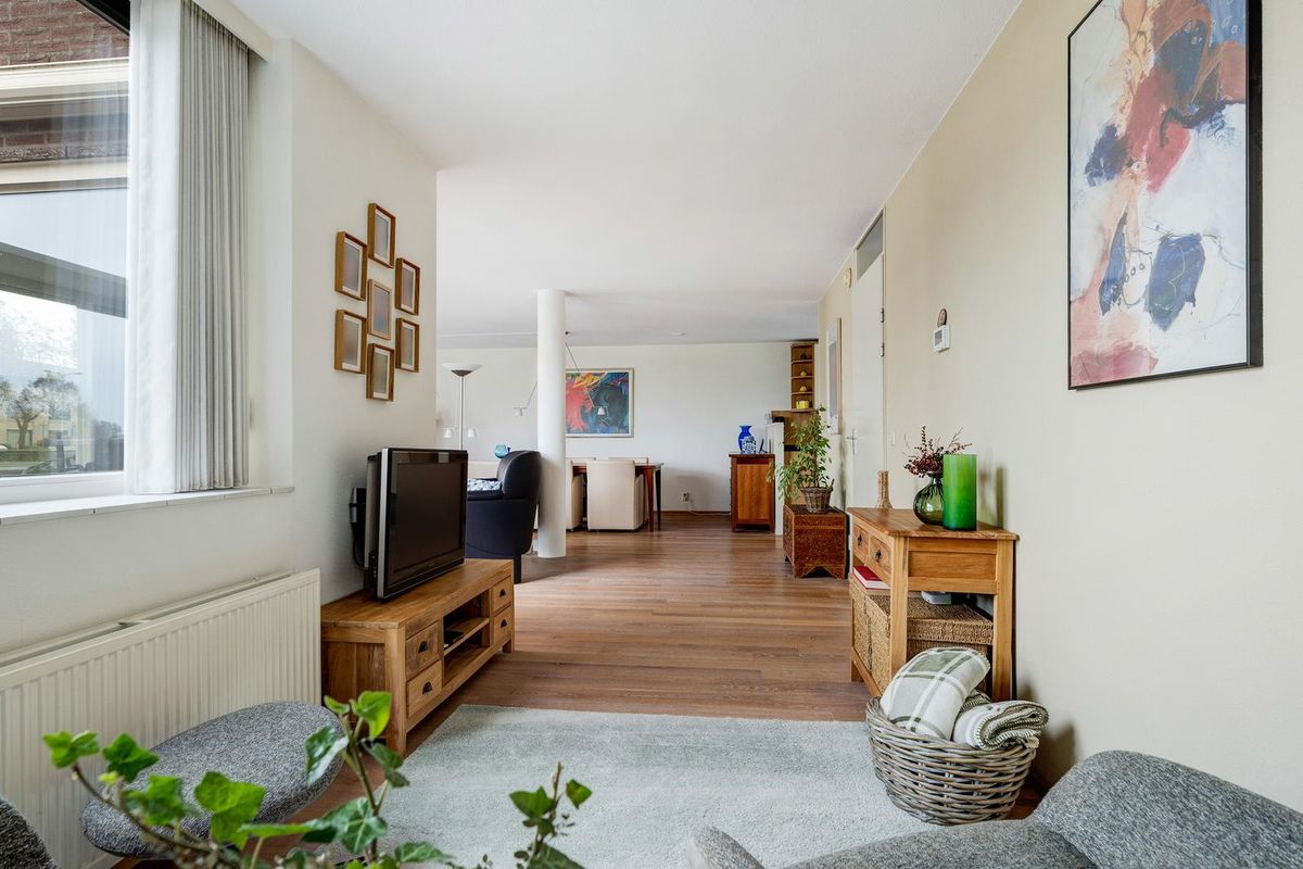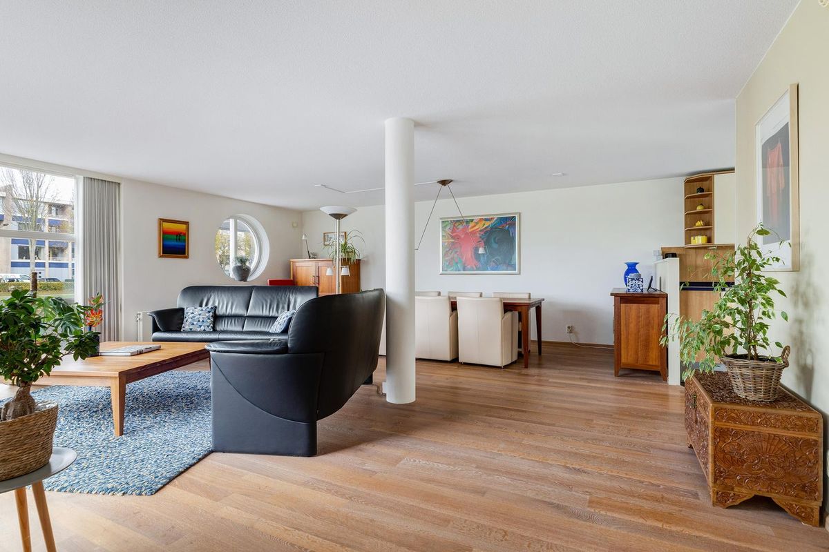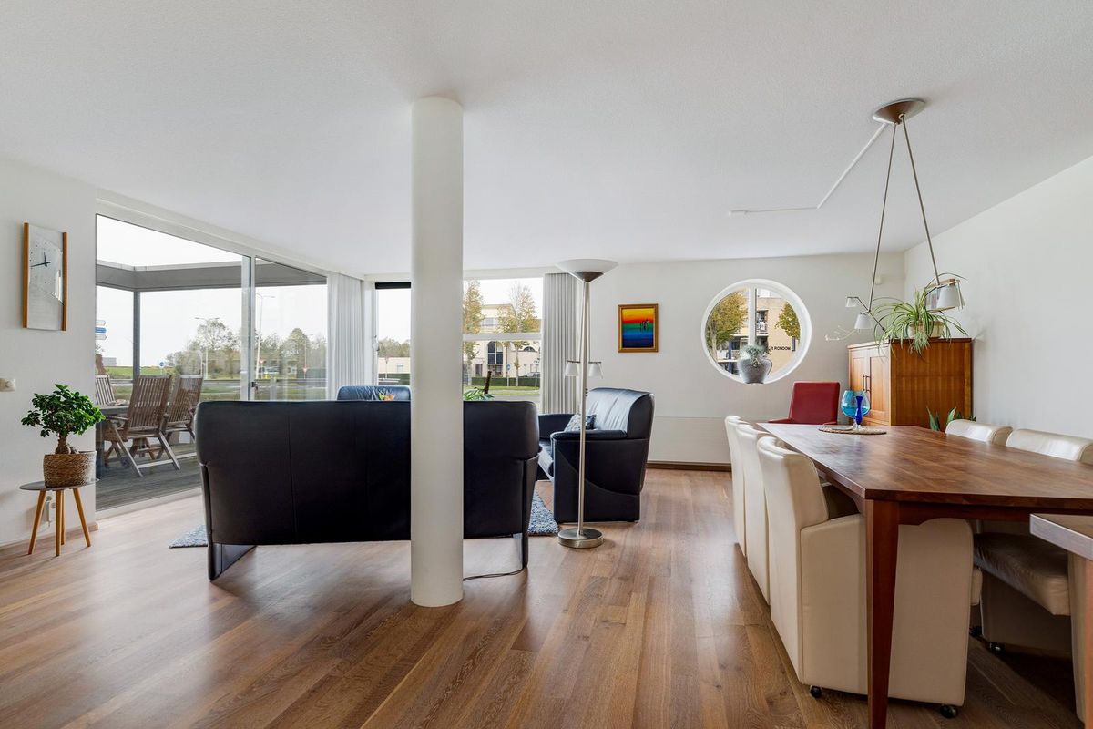 - Zeer lichte woonkamer met grote raampartijen en schuifpui