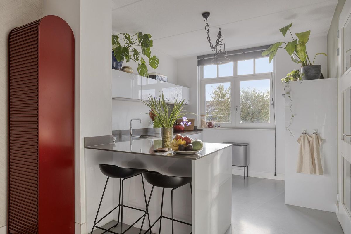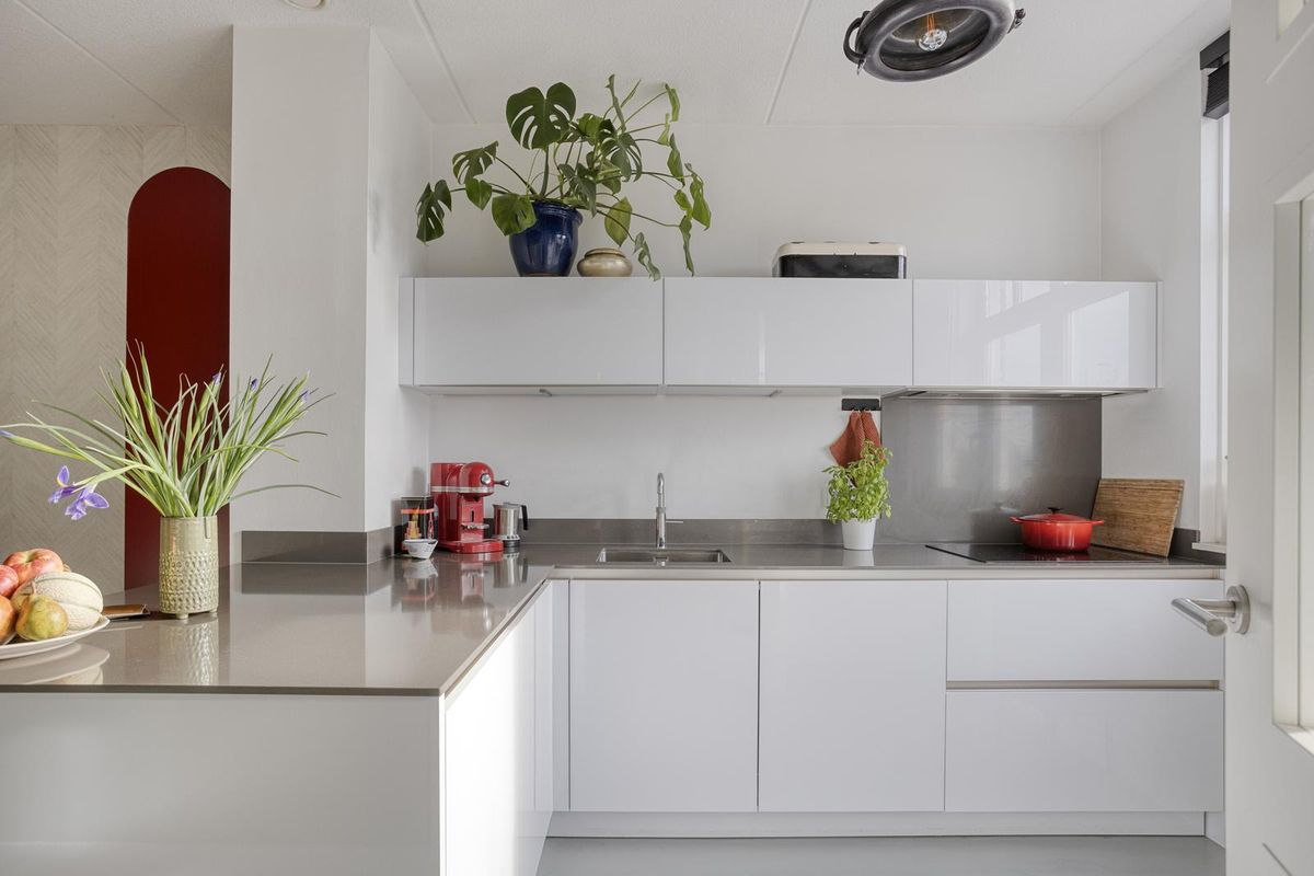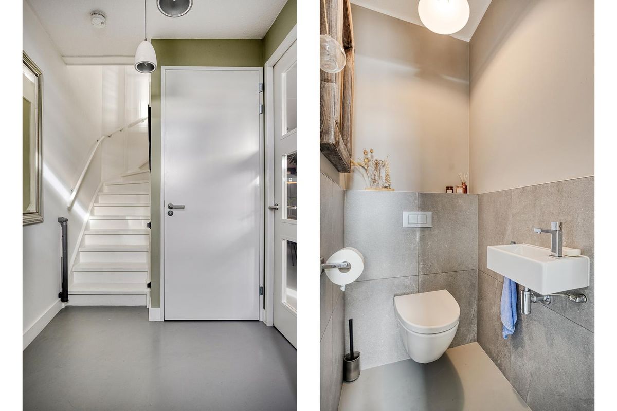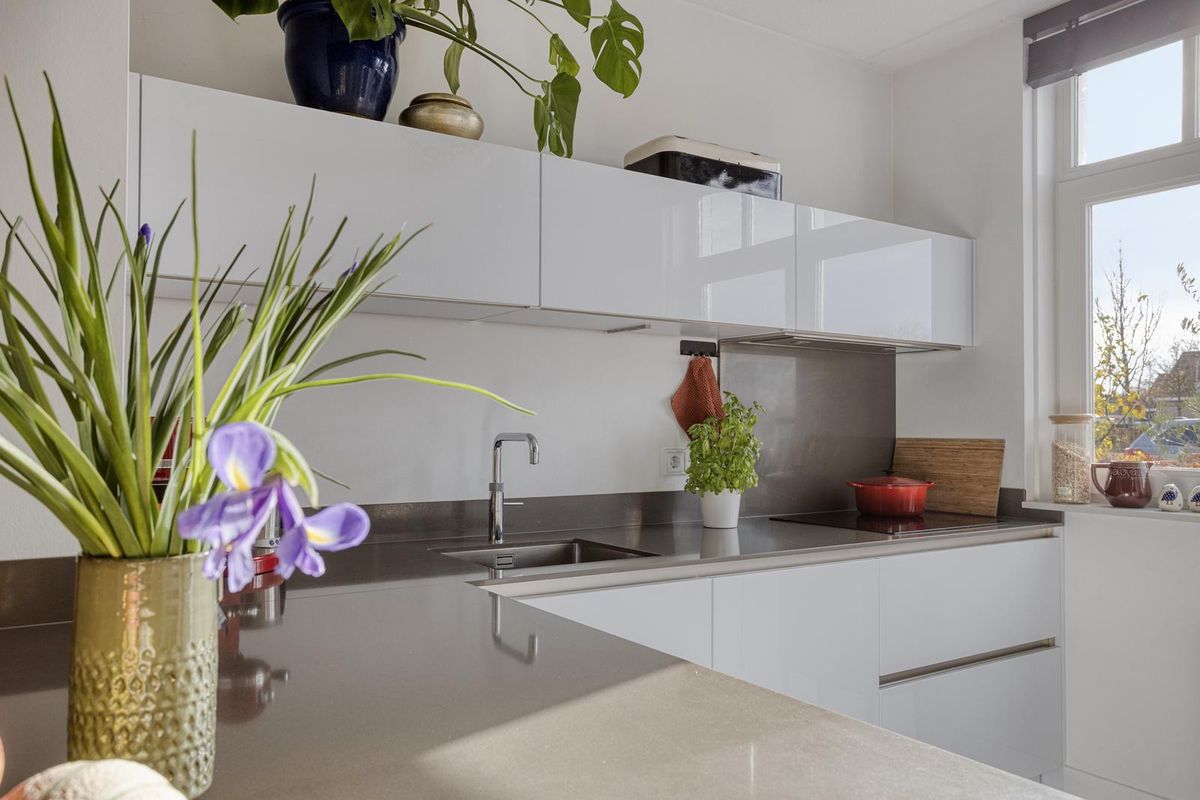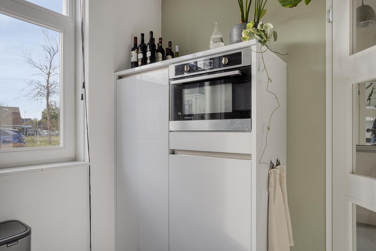 Achter de stijlvolle gevel stap je binnen in de ruime hal met trapopgang, praktische trapkast (bereikbaar via woonkamer) en modern toilet. De Tieleman-keuken aan de voorzijde is volledig uitgerust met hoogwaardige inbouwapparatuur, waaronder een koelkast, vriezer, vaatwasser, Quooker, inductiekookplaat en combi-oven. De royale woonkamer is dankzij de uitbouw heerlijk ruim en licht. De dubbele openslaande deuren naar de achtertuin, de strakke gietvloer (2023) en de vloerverwarming zorgen voor een perfecte mix van comfort en sfeer.