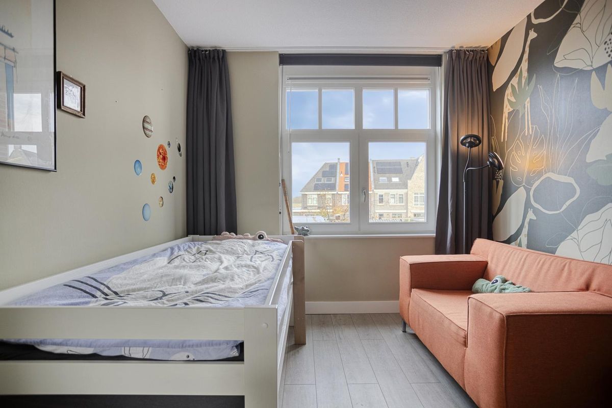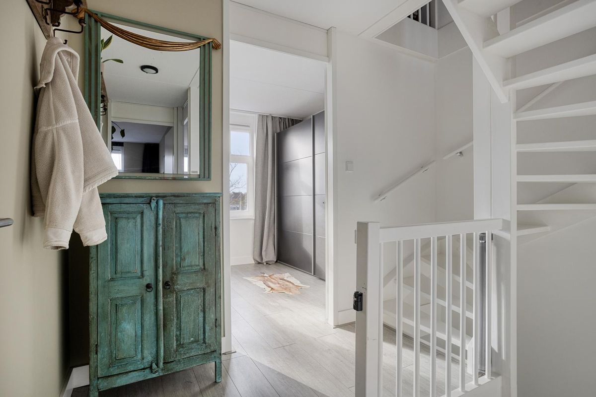 De tweede verdieping, met ramen aan beide zijden en drie rechte wanden tot aan de nok, biedt volop mogelijkheden voor een extra slaapkamer, kantoor of hobbyruimte. De hoogte van de ruimte geeft een extra gevoel van vrijheid en licht. Hier bevinden zich tevens de cv-installatie, aansluitingen voor wasmachine en droger en het systeem voor mechanische ventilatie.