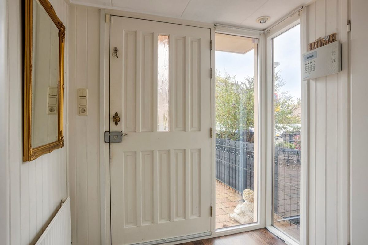 Als u aan komt rijden de straat in, ziet u al dat de woning lekker ‘vrij’ ligt. U heeft niet direct te maken met overburen en u kijkt vrij de straat in. De verzorgde voortuin nodigt zeker uit om een tuinset te plaatsen, want hier heeft u de middag- en avondzon. Netjes bestraat en aan drie zijden afgescheiden met een sjiek metalen sierhekwerk! Via de overkapte entree komt u in de hal met deuren naar de meterkast (1996), berging en de woonkamer.