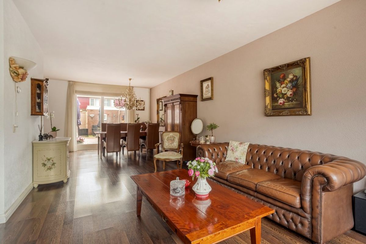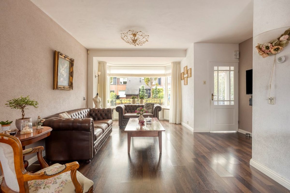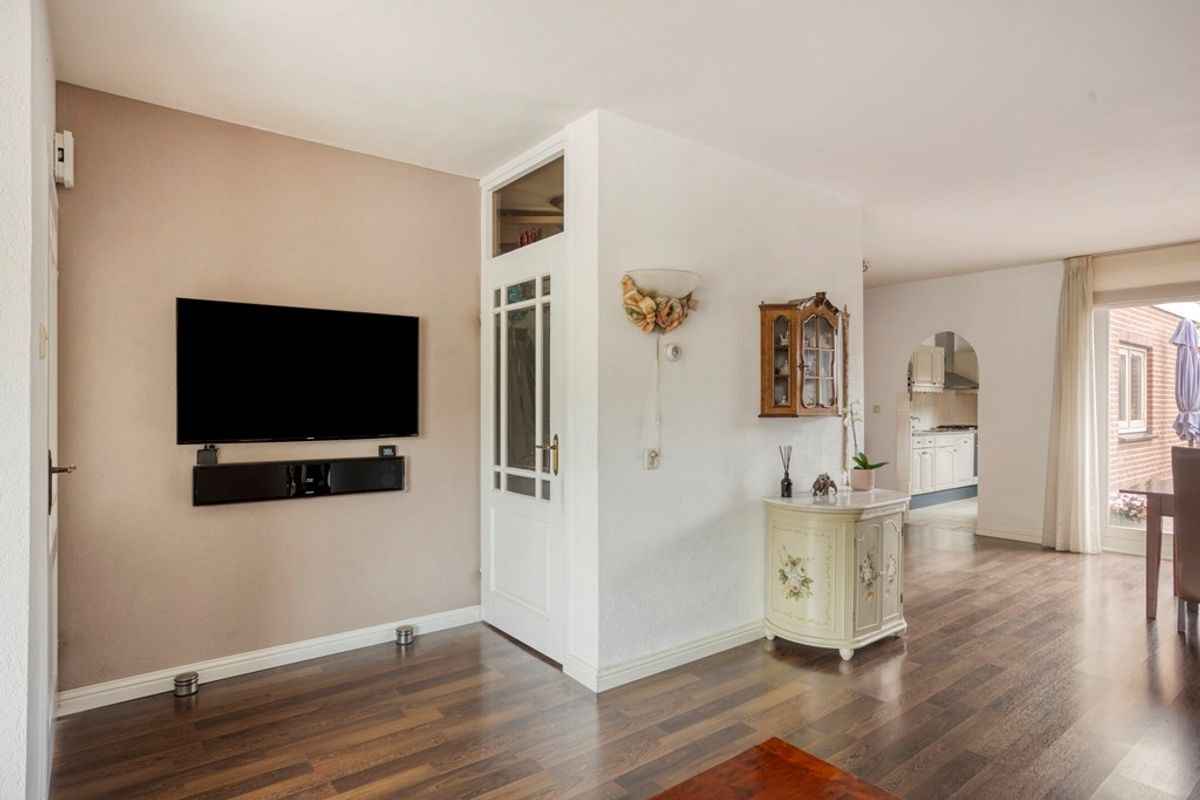 De living, daar kunt u iets mee! Ruimte voor een riante zithoek aan de voorzijde, mede vanwege de erker (2002). De lichtinval is hier maximaal, vanwege de zijramen in de erker. Aan de achterzijde is een schuifpui geplaatst en hier is op diverse plekken ruimte voor een grote eettafel met zes tot acht stoelen. Op de vloer ligt laminaat, de wanden en plafonds zijn gestuukt.