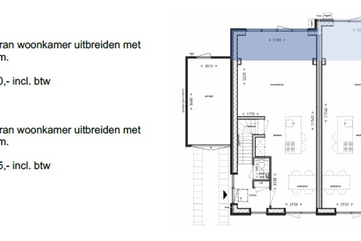 Meerdere uitbreidingen zijn mogelijk, waaronder het vergroten van de woonkamer met bijvoorbeeld dubbele tuindeuren!