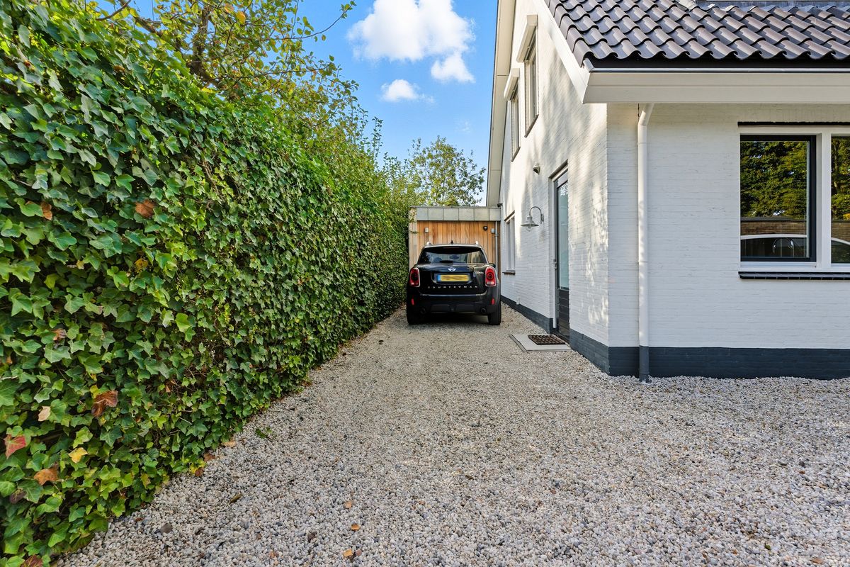 Voortuin: Verzorgde voortuin met grindpad, elektrisch hek en parkeergelegenheid op eigen terrein. Ideaal om je auto dichtbij huis te hebben. De voortuin is voorzien van water- en elektrapunten.