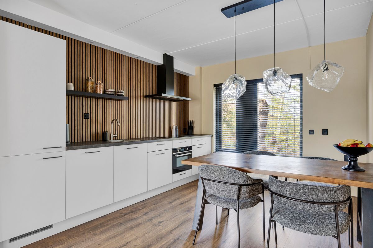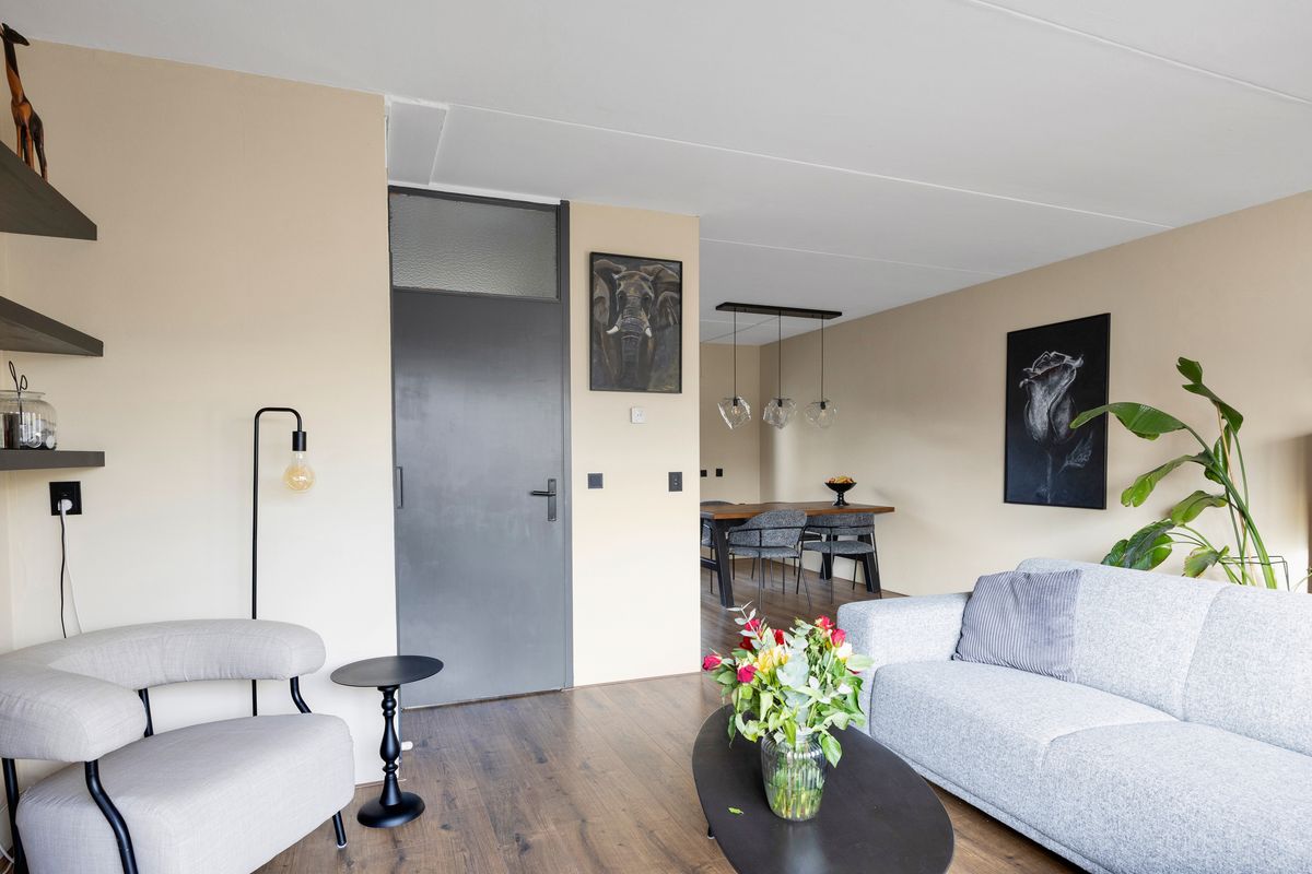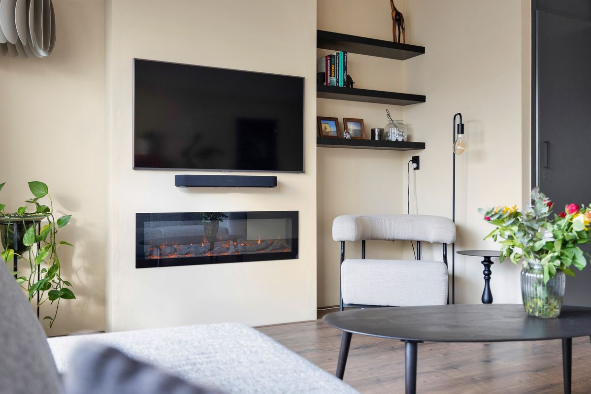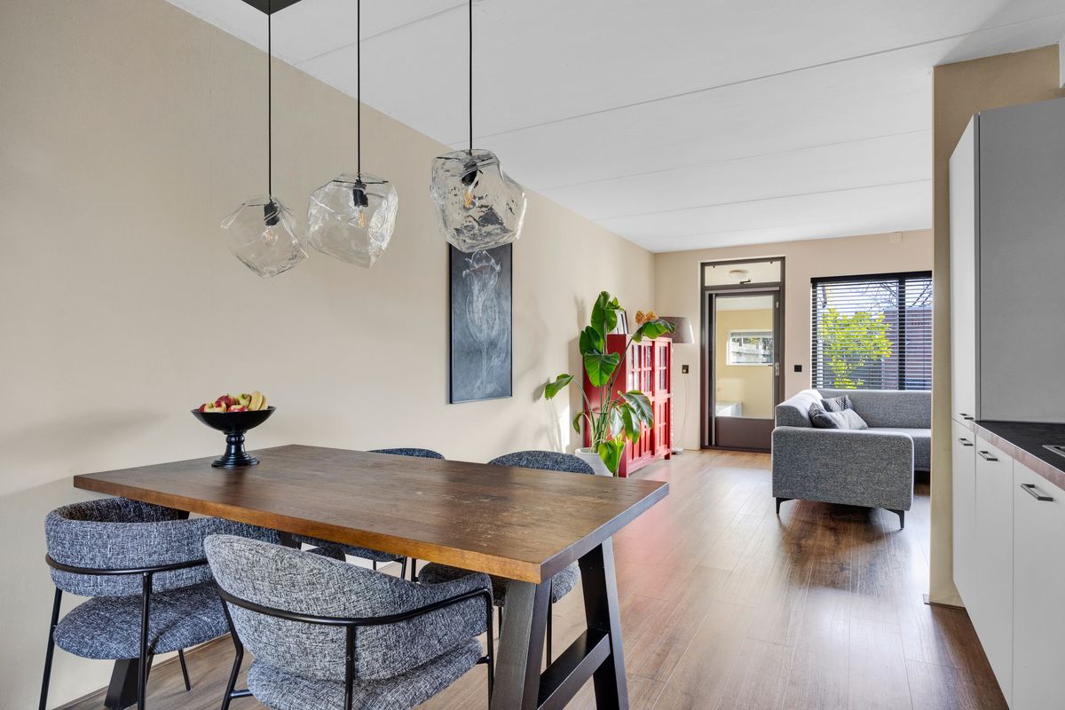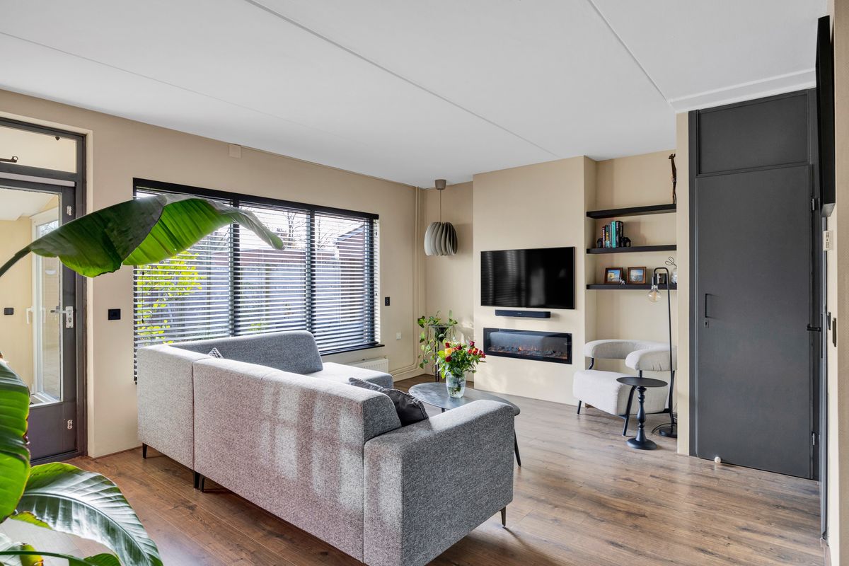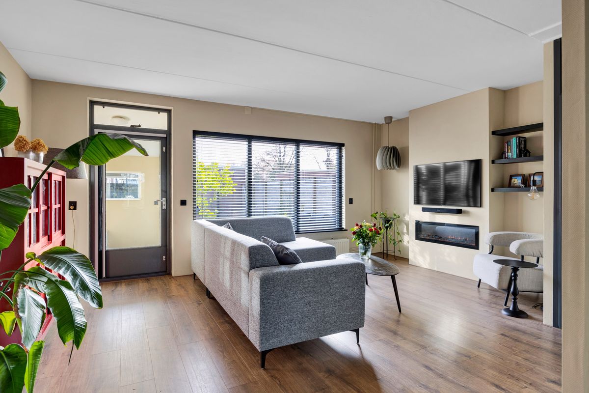 We betreden de woning via de voordeur en komen in de hal met meterkast, toilet, trapopgang en toegang tot de woonkamer. De woonkamer is sfeervol en voorzien van een tv-wand met inbouw sierhaard, welke achterblijft voor de nieuwe bewoners. Het grote raam aan de achterzijde zorgt voor natuurlijke lichtinval in de woonkamer. De open keuken bevindt zich aan de voorzijde, deze is voorzien van een nieuwe rechte keukenopstelling geplaatst in 2024 en voorzien van een koel-vriescombinatie, vaatwasser, combi-oven, inductie kookplaat en afzuigkap. Onder de trap is nog een ruime voorraadkast. Via de woonkamer is er toegang tot de bijkeuken, deze heeft een kunststof schuifpui welke toegang geeft tot de achtertuin op het zuiden met achterom. In de tuin staat nog een stenen berging.
