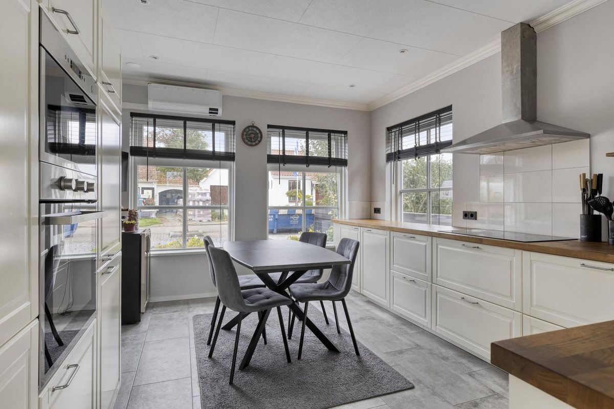 Je komt binnen in de langwerpige hal met rechts een kantoor-/hobbykamer. Verder is hier een handige verdiepte voorraadkast onder de trap. De woonkamer is zeker door de recente uitbouw lekker ruim (25 m2). Doordat de woonkamer tuingericht is, heb je hier mooi zicht op de diepe tuin. De woonkamer staat in open verbinding met de keuken aan de voorzijde. De nette keuken is voorzien van een inductiekookplaat, afzuigkap, oven, magnetron, vaatwasser en koel-/vriescombinatie en wijnkoeler. Ook is er plaats voor het witgoed. De airco zorgt ervoor dat deze ruimte desgewenst zowel te koelen als te verwarmen is. De badkamer bevindt zich eveneens op de begane grond en is uitgerust met een wastafelmeubel, inloopdouche, ligbad, toilet en handdoekradiator.