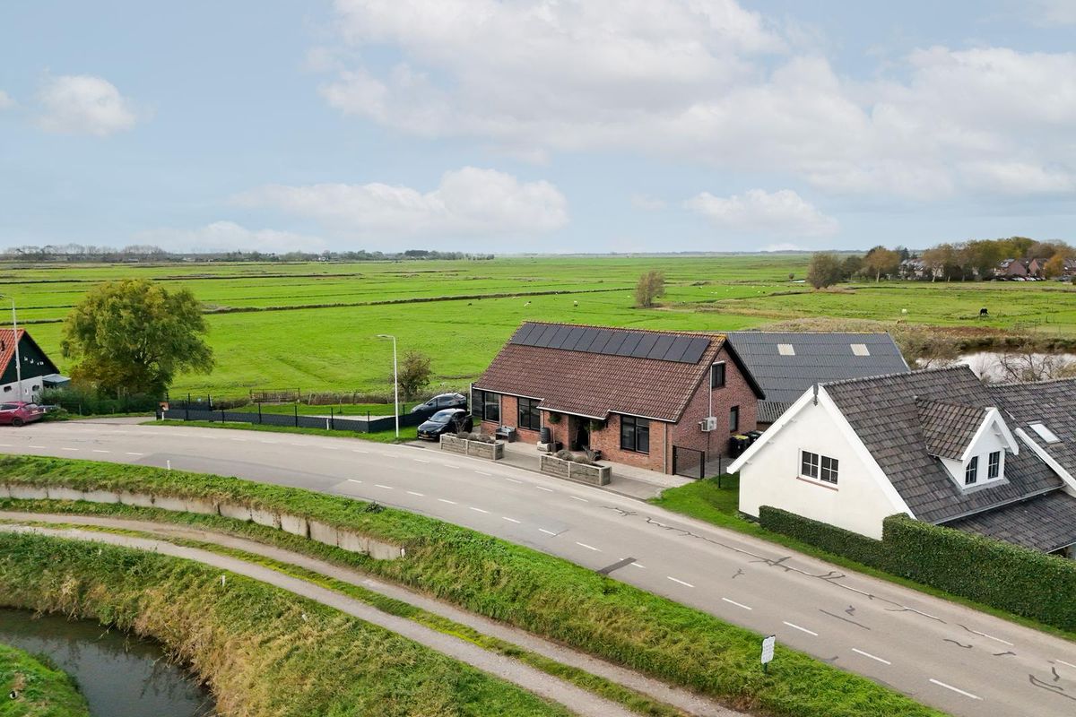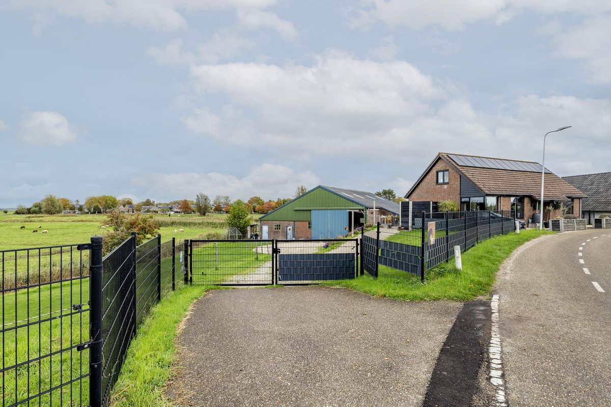 De brede oprit vanaf de dijk biedt plaats aan meerdere auto's. Rondom de loods is volop ruimte voor een moestuin, boomgaard, speelweide of tuin. Dankzij het vrije uitzicht over de polder en de rust van het omliggende landschap is dit een plek waar buitenleven echt tot zijn recht komt.