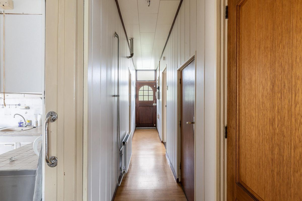 Hal/entree met de meterkast (6 groepen en 1 kookgroep). Vanuit de hal zijn de woonkamer, keuken, bijkeuken, multifunctionele ruimte en de 1e verdieping bereikbaar.