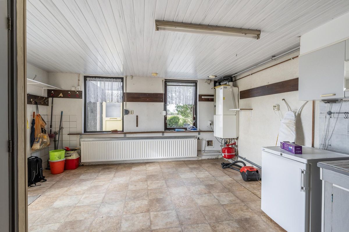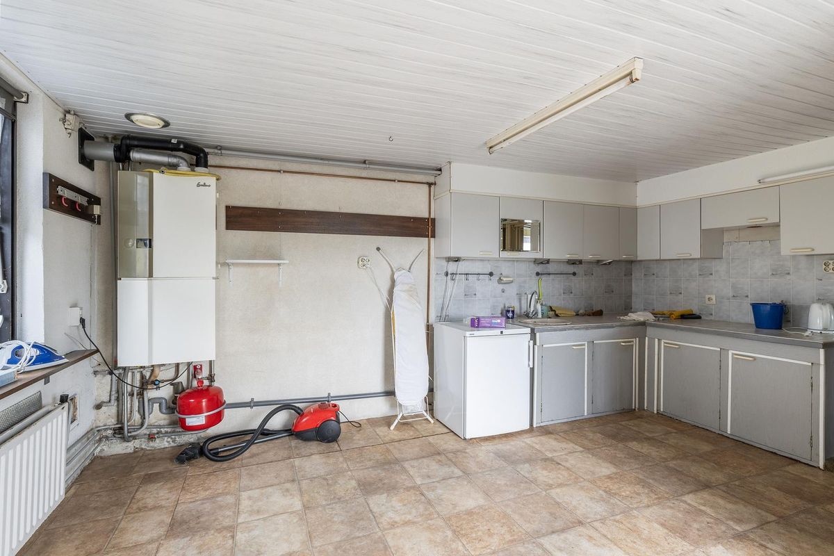 De bijkeuken is aan de achterzijde gelegen met daarin de opstelplaats van de CV-combiketel (Nefit Ecomline, 2005) en een keukenblok. Deze ruimte geeft toegang tot toilet, doucheruimte en tuin.