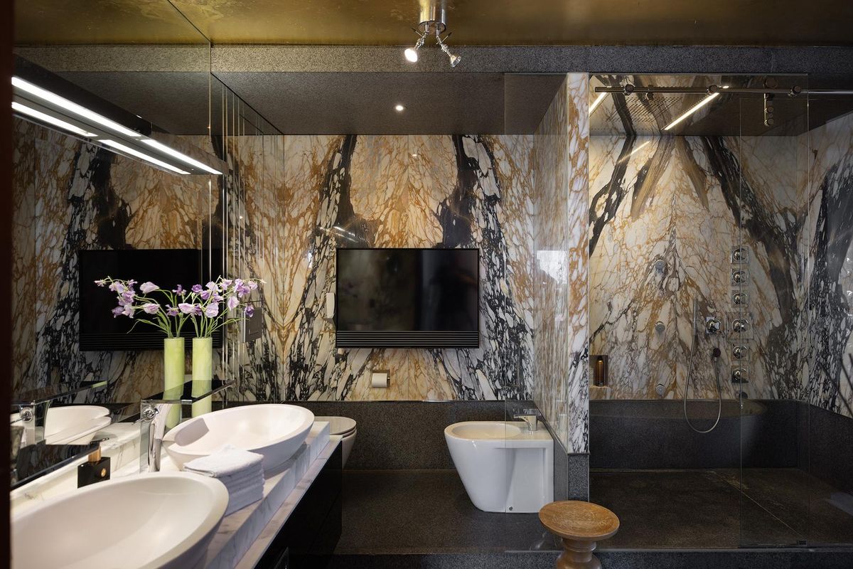 Badkamer 2 voorzien van inloopdouche, dubbele wastafel, toilet en bidet