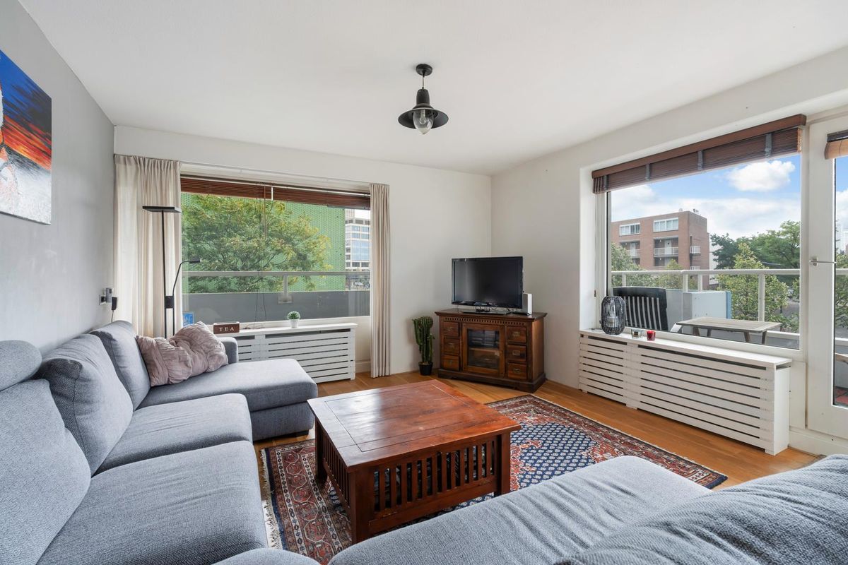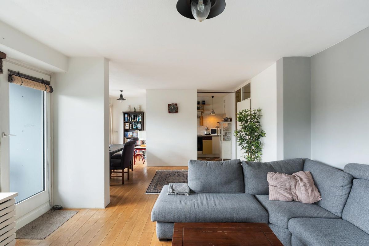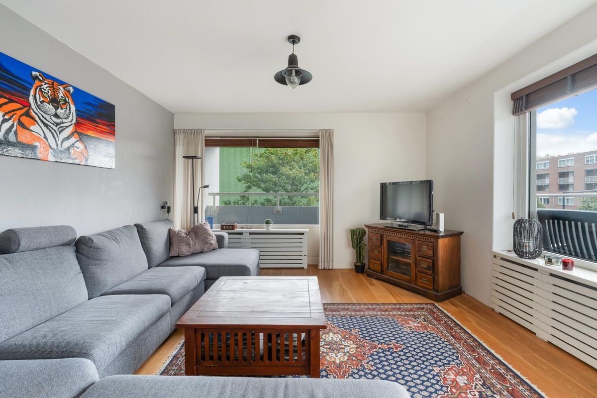 Bij binnenkomst in de hal treffen we direct rechts de riante woonkamer met aangrenzend de half open keuken. Vanwege de gunstige ligging op de hoek zijn er raampartijen rondom en treed er lekker veel licht de woonkamer in. De mooie houten vloer zorgt voor een warme uitstraling in deze mooie woonkamer. Vanuit de woonkamer kun je ook het op het zuiden gelegen balkon bereiken. Hier geniet je heerlijk van de zon!