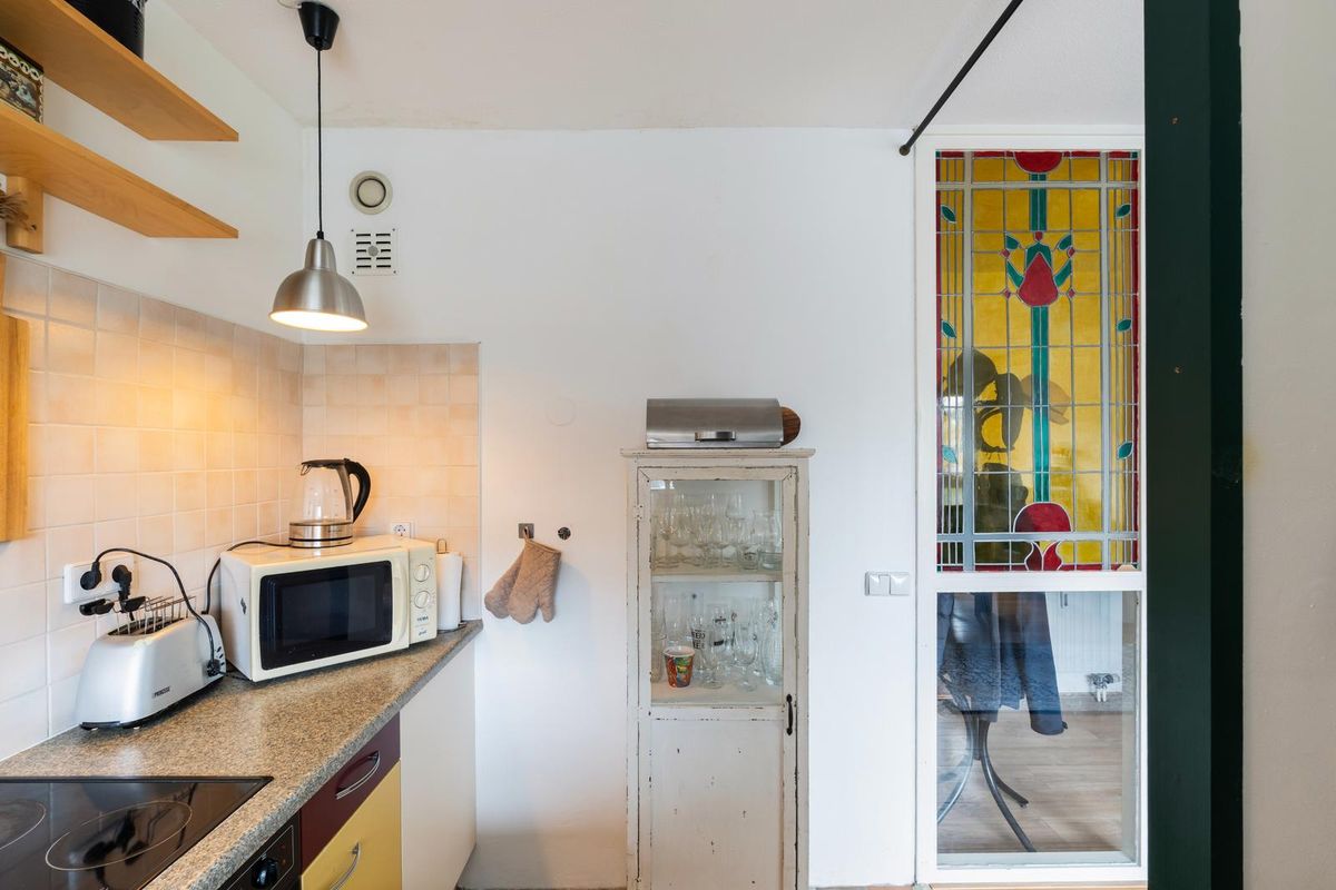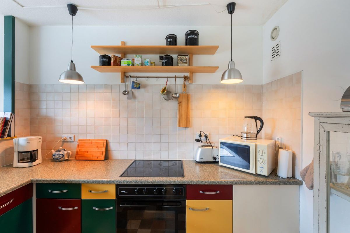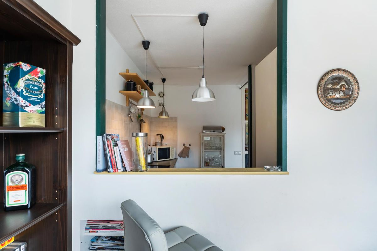 Vanuit de keuken, welke is voorzien van inbouwapparatuur, hou je contact met de eethoek via het barretje.