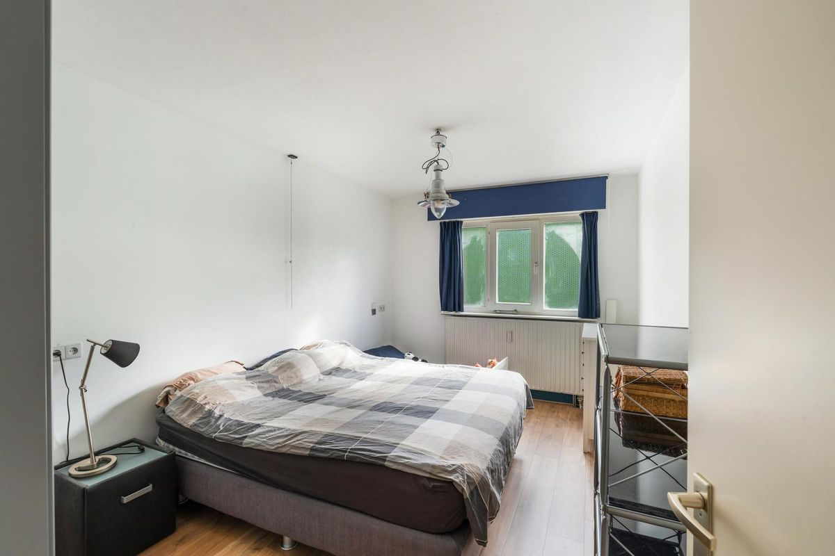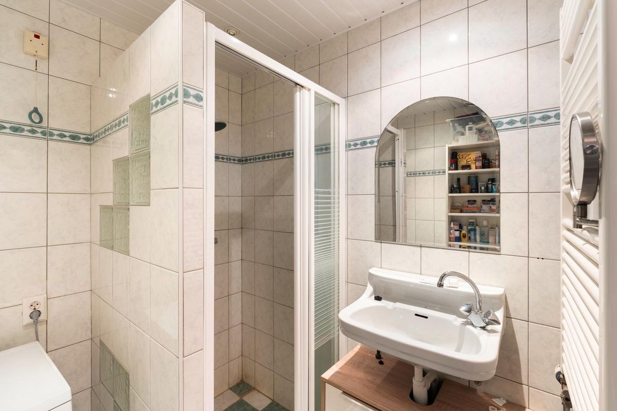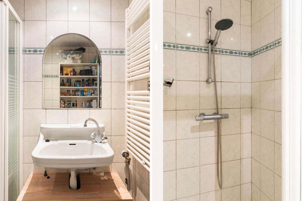 Terug in de hal treffen we nog het toilet en de naastgelegen badkamer (met wasmachine aansluiting). Ook vinden we hier een handige berging/voorraadkast. Achterin de hal bevinden zich de twee slaapkamers (13m² en 10m²) waarvan de kleinere kamer ook nog toegang biedt tot het balkon.