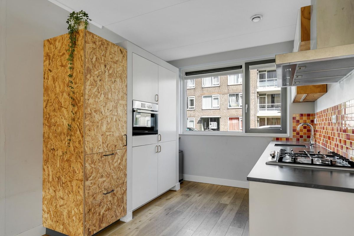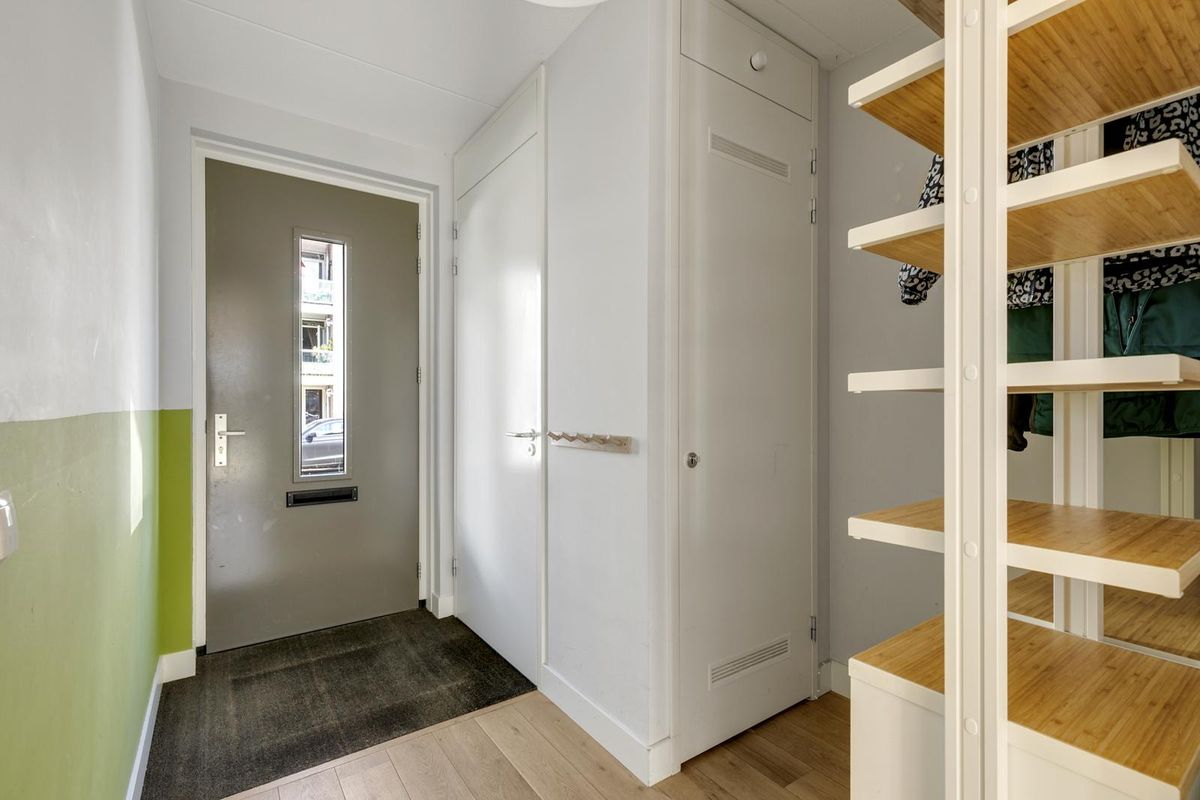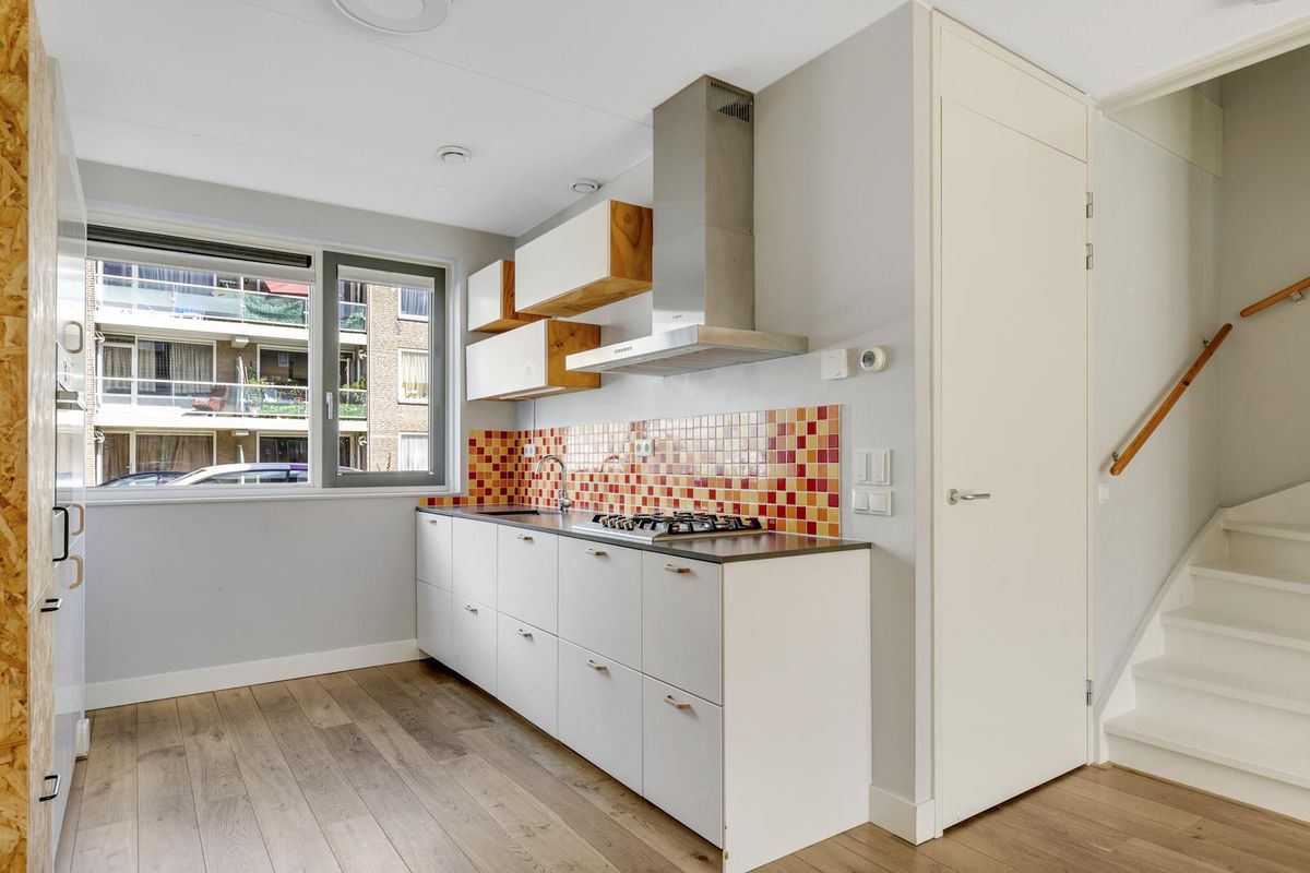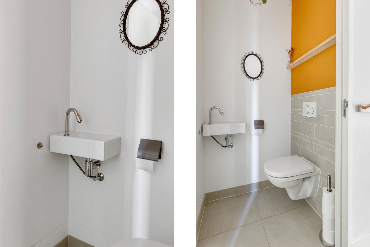 Via de verzorgde voortuin bereik je de entree met hal, meterkast, trapopgang en een modern toilet. De ruime woonkamer is een heerlijke plek om samen te komen: veel licht, een mooie houten vloer en openslaande deuren naar de tuin. De open keuken in moderne kleurstelling is compleet uitgerust met inbouwapparatuur, zodat koken hier een plezier is.