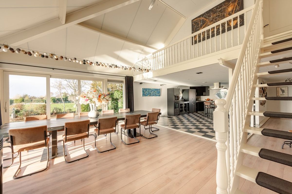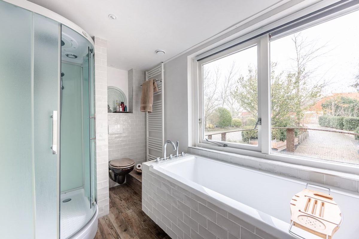 Ook vanuit het torenkamertje. Je hebt hier prachtige vergezichten. Een heerlijke inspiratieruimte. En er zijn nog meer bijzonderheden. Op deze eerste verdieping vind je namelijk een vide en een soort werkoverloop. Daarnaast zijn er drie ruime slaapkamers, een dakkapel en veel bergruimte. De badkamer is voorzien van een douche, een wastafelmeubel en een toilet.