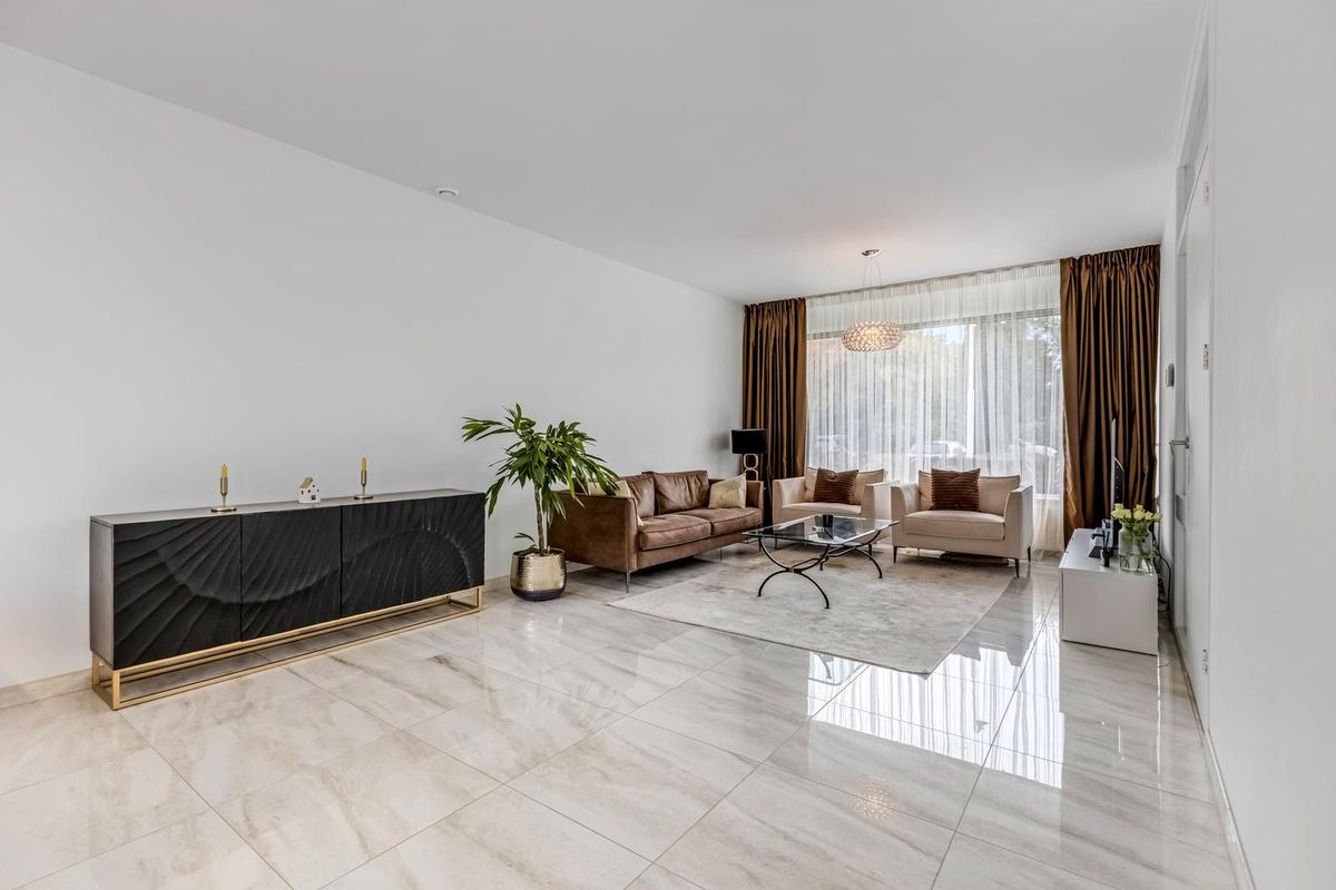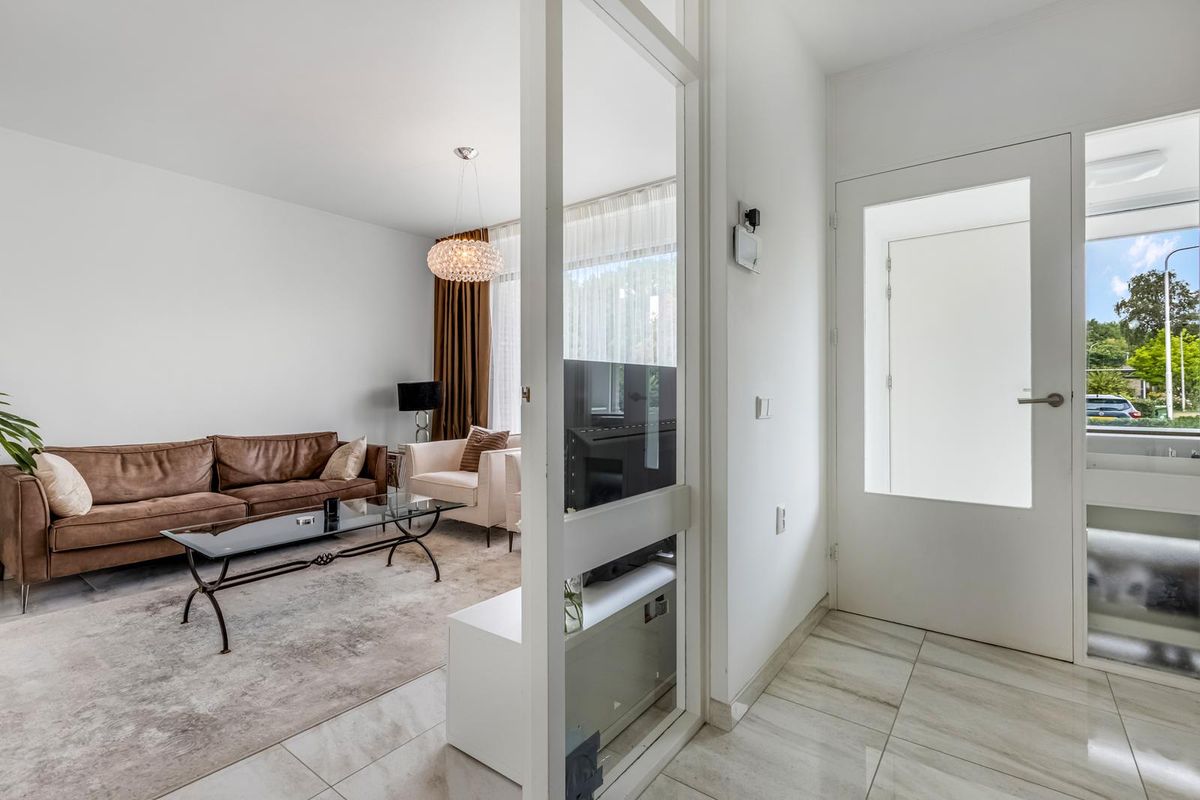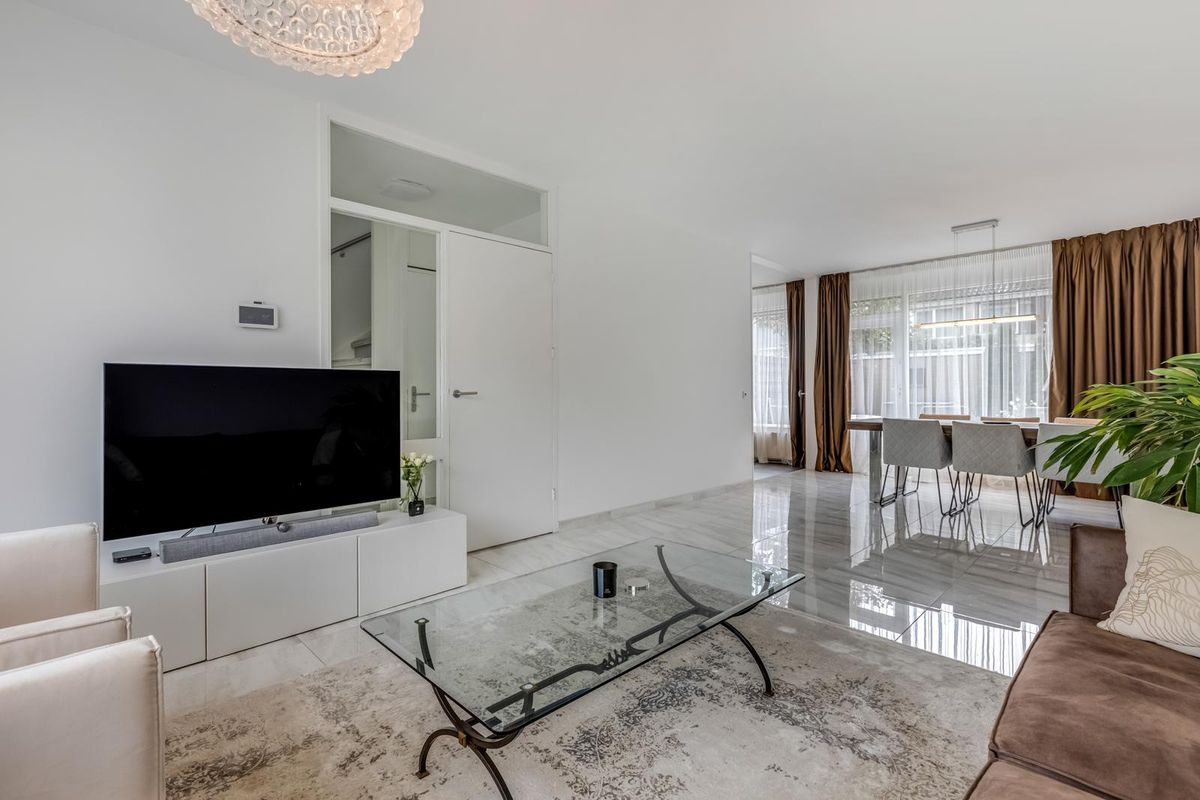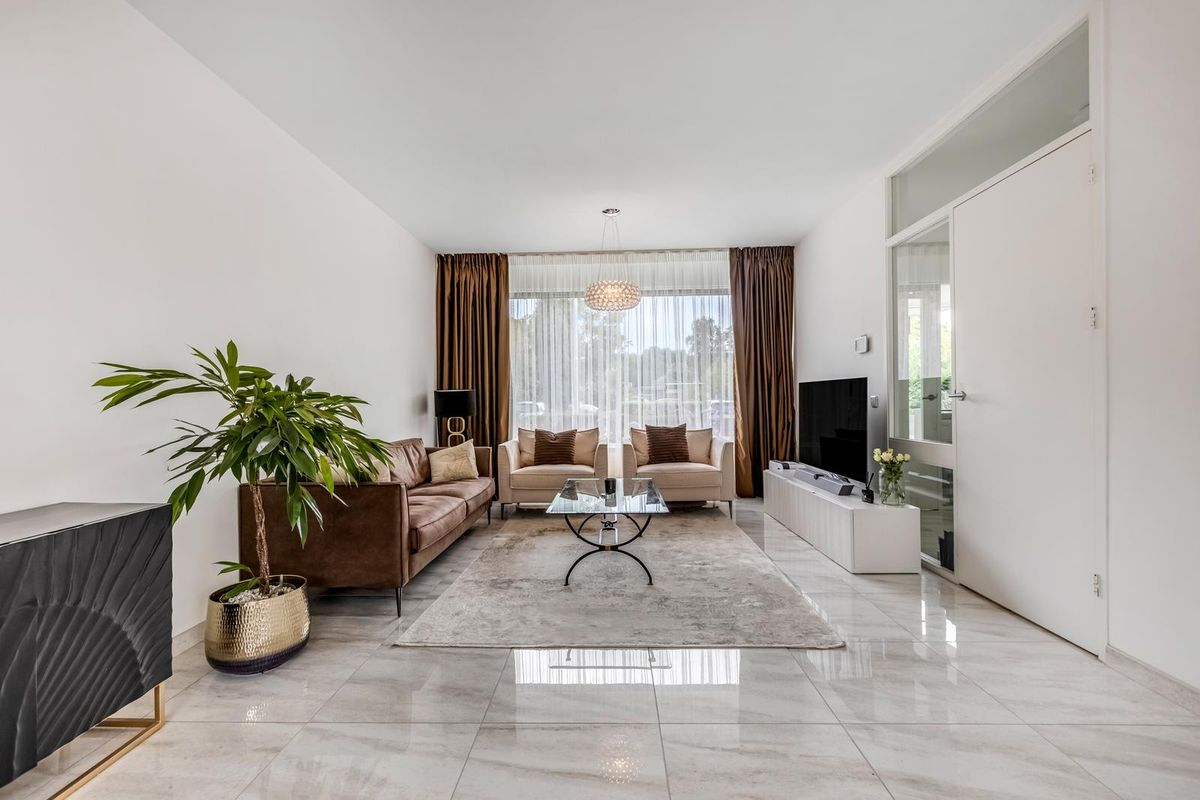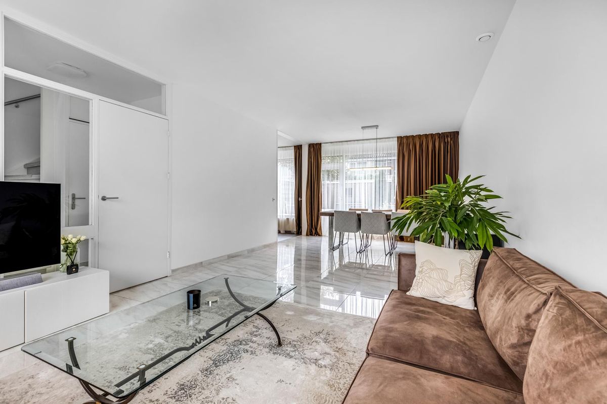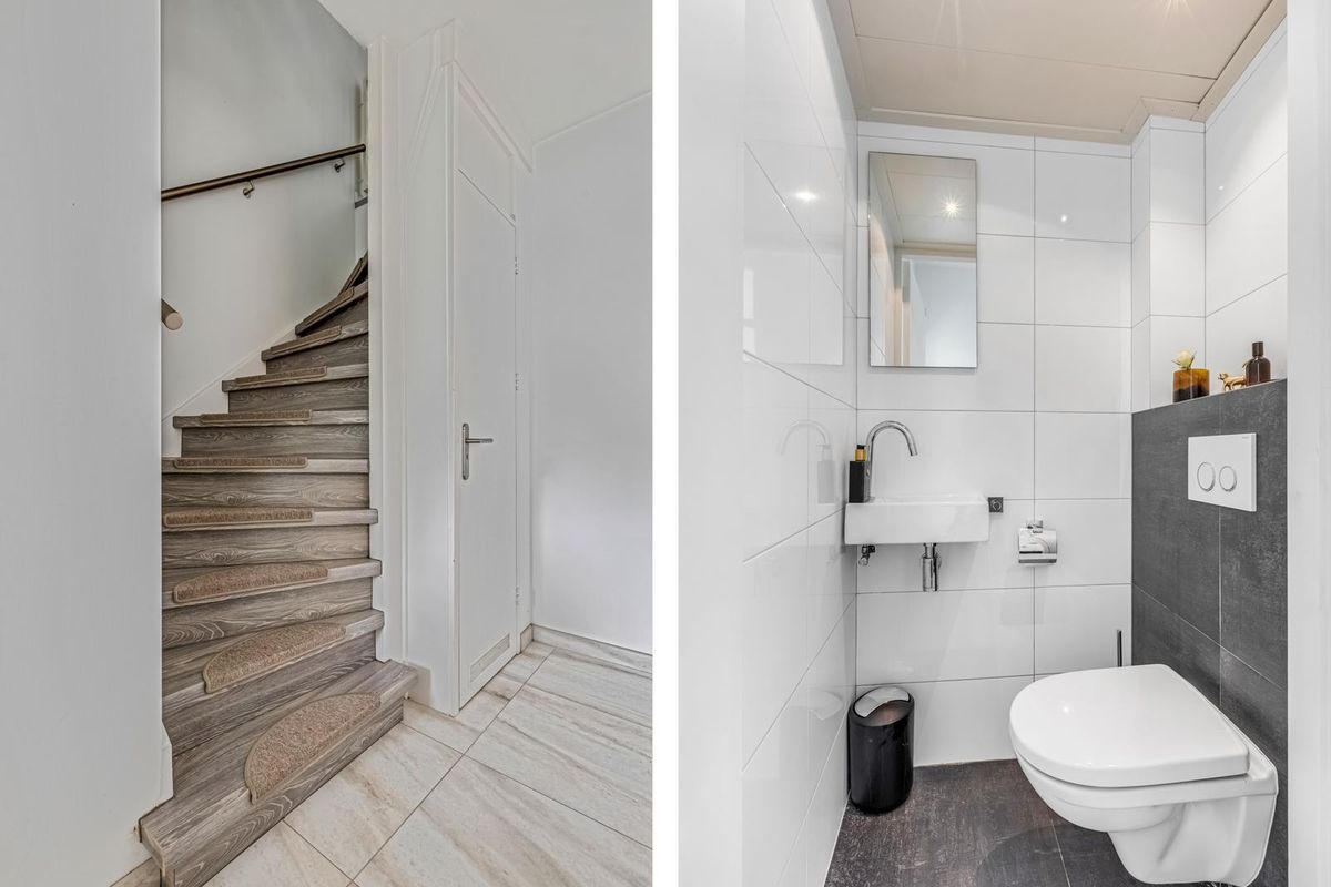 Via de entree kom je binnen in een fijne hal met moderne meterkast en een separaat toilet met fontein. De begane grond is afgewerkt met een lichte tegelvloer en strakke, witte wanden en plafonds. Hier geniet je van een doorzonwoonkamer met grote raampartijen die zorgen voor een overvloed aan natuurlijk licht. Er is meer dan genoeg ruimte voor een royale zit- en eethoek, waardoor het echt een plek is om samen te komen met familie en vrienden.