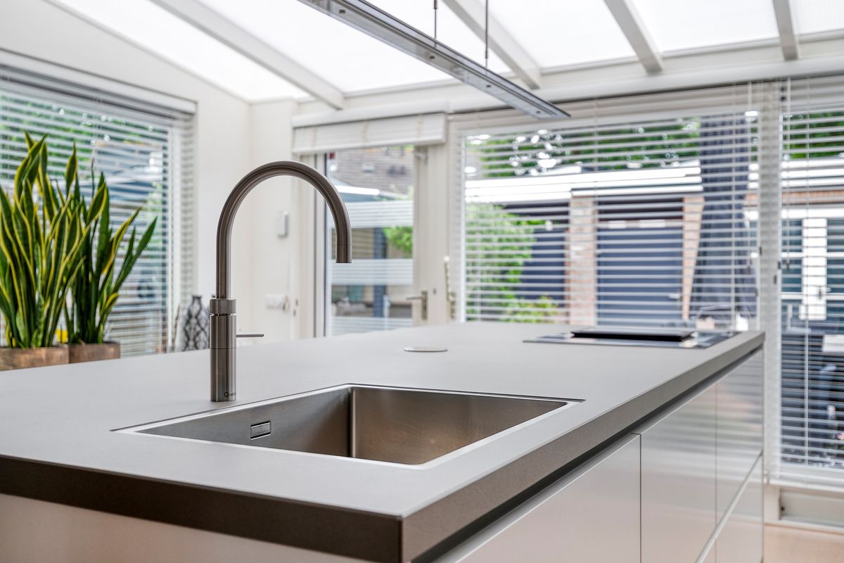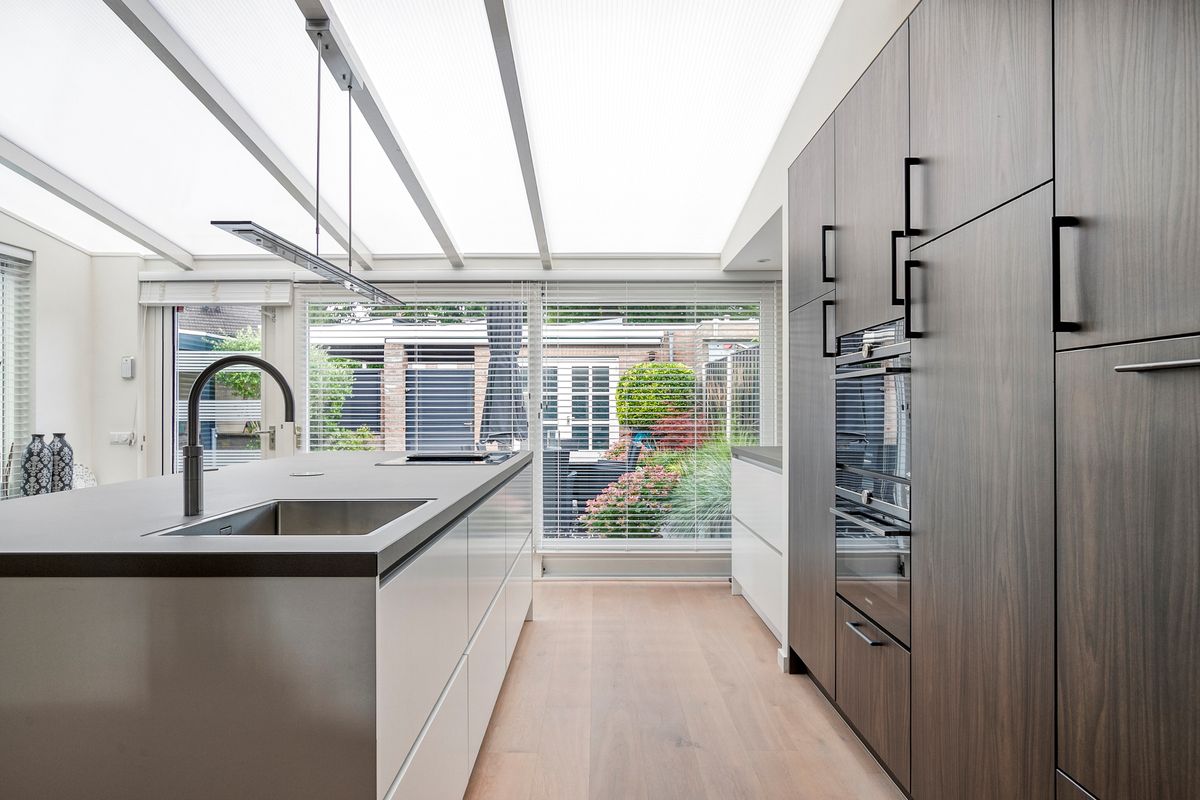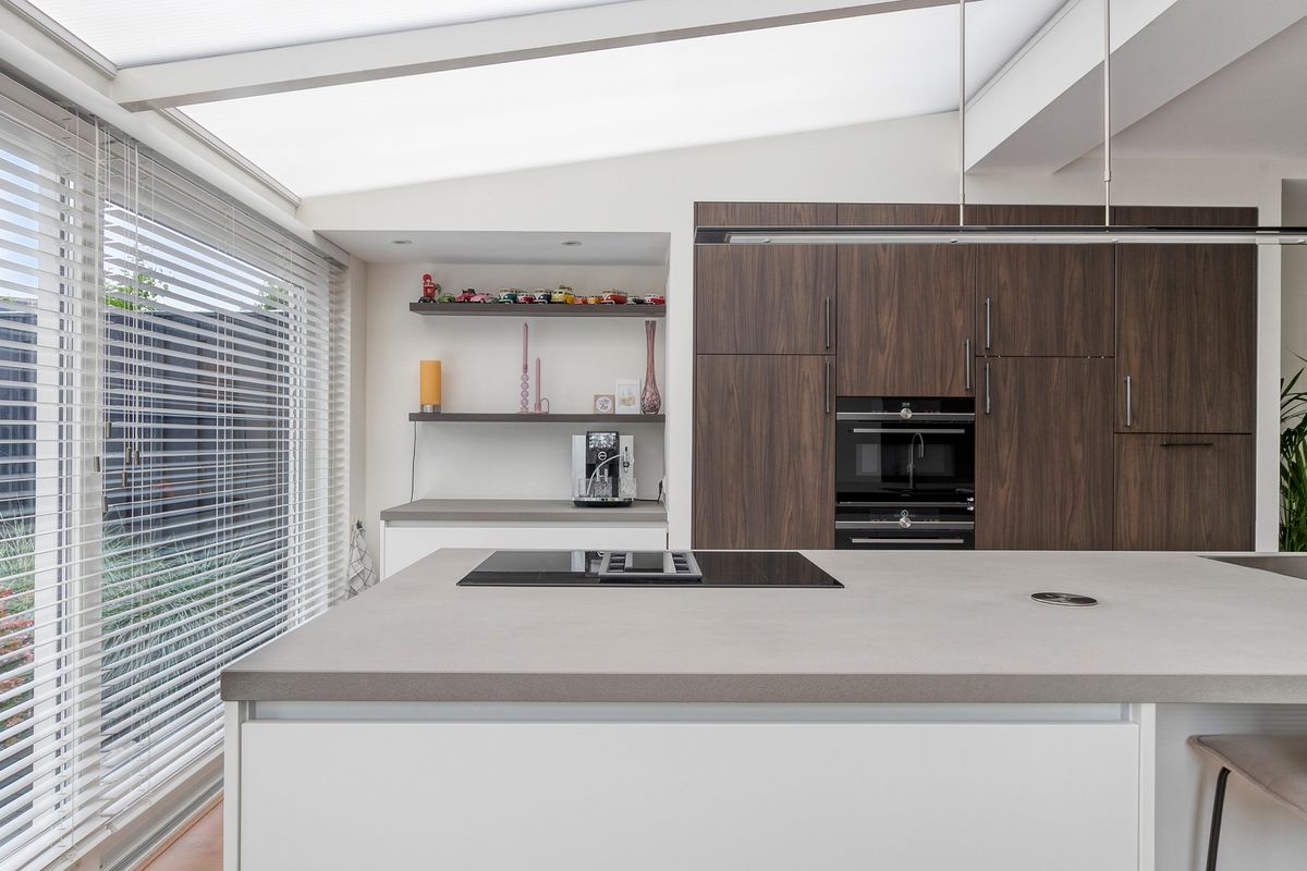 In deze uitbouw is een moderne inbouwkeuken geplaatst met de volgende apparatuur: