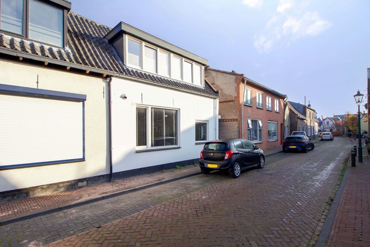 Binnen vind je een lichte woonkamer met open keuken, waar het kookeiland zorgt voor een gezellige verbinding tussen koken en tafelen. Met een oppervlakte van circa 5 bij 6 meter is er genoeg ruimte voor een eethoek en een comfortabele zithoek. De grote ramen brengen veel daglicht binnen, wat het geheel een prettige, open sfeer geeft.