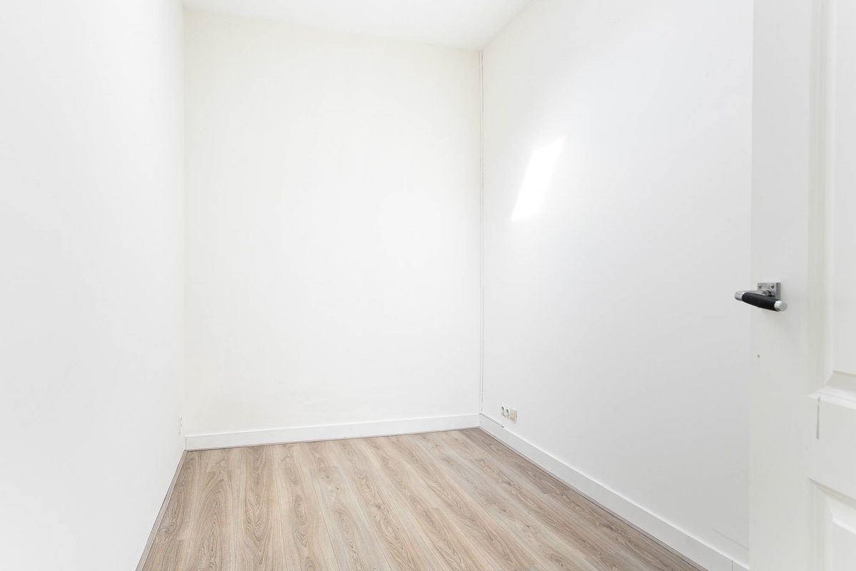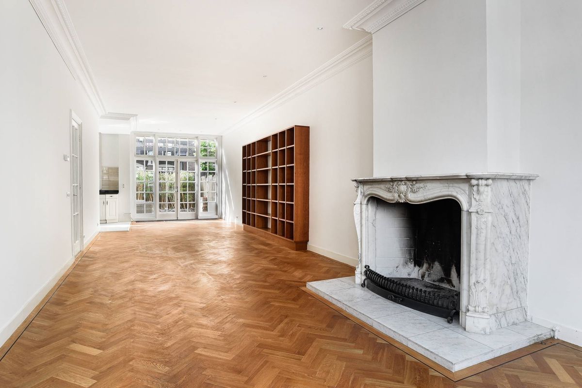 Entrance of the house on the ground floor, spacious hall with separate toilet and access to the basement that can be used for storage. Spacious living / dining room with beautiful fireplace, herringbone flooring and ceiling with spotlights. The open kitchen is equipped with all built in appliances, like gas stove, dishwasher, refrigerator, microwave and oven. Via the patio doors at the backside of the property you can enter the sunny back yard that is facing South East.