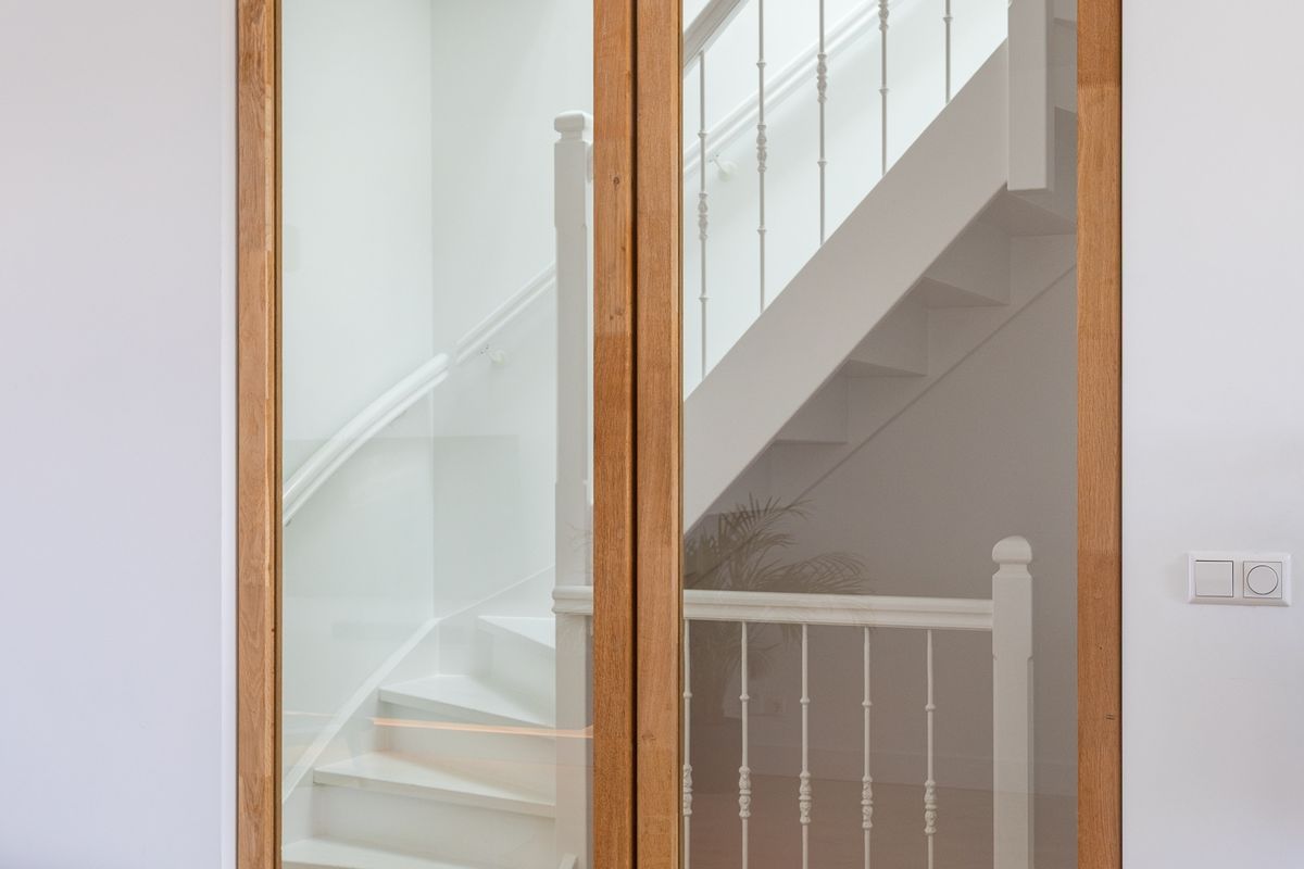 Eigen entree op de eerste verdieping. Trap naar de ruime hal op de tweede verdieping met modern toilet en een multifunctionele kamer aan de voorzijde – perfect als thuiskantoor of logeerkamer. Blikvanger is de royale living met veel licht en een luxe open keuken, bereikbaar via design taatsdeuren van eikenhout. De zithoek aan de voorzijde biedt uitzicht over de levendige straat, terwijl je aan de achterzijde dineert met toegang tot het zonnige balkon (zuidwesten).