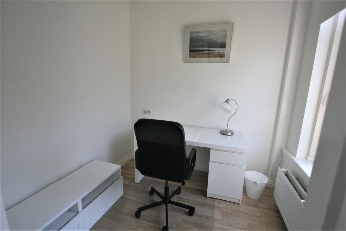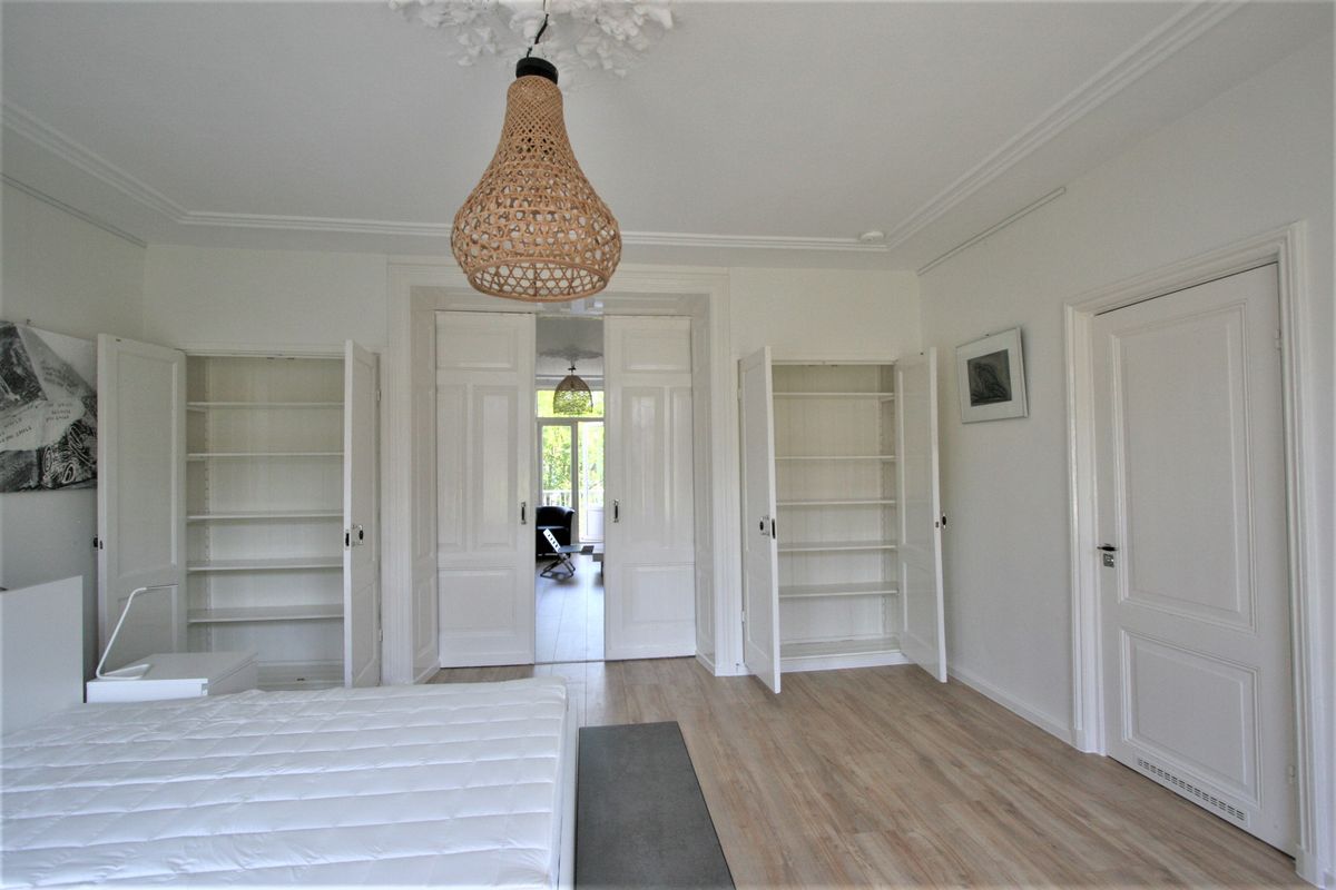 The en-suite sliding doors give access to the spacious bright bedroom, a wonderfully spacious feeling with the en-suite doors open. The third room is furnished as a study, also a bright room. The new bathroom is equipped with a shower, washbasin and towel radiator. Separate toilet.
