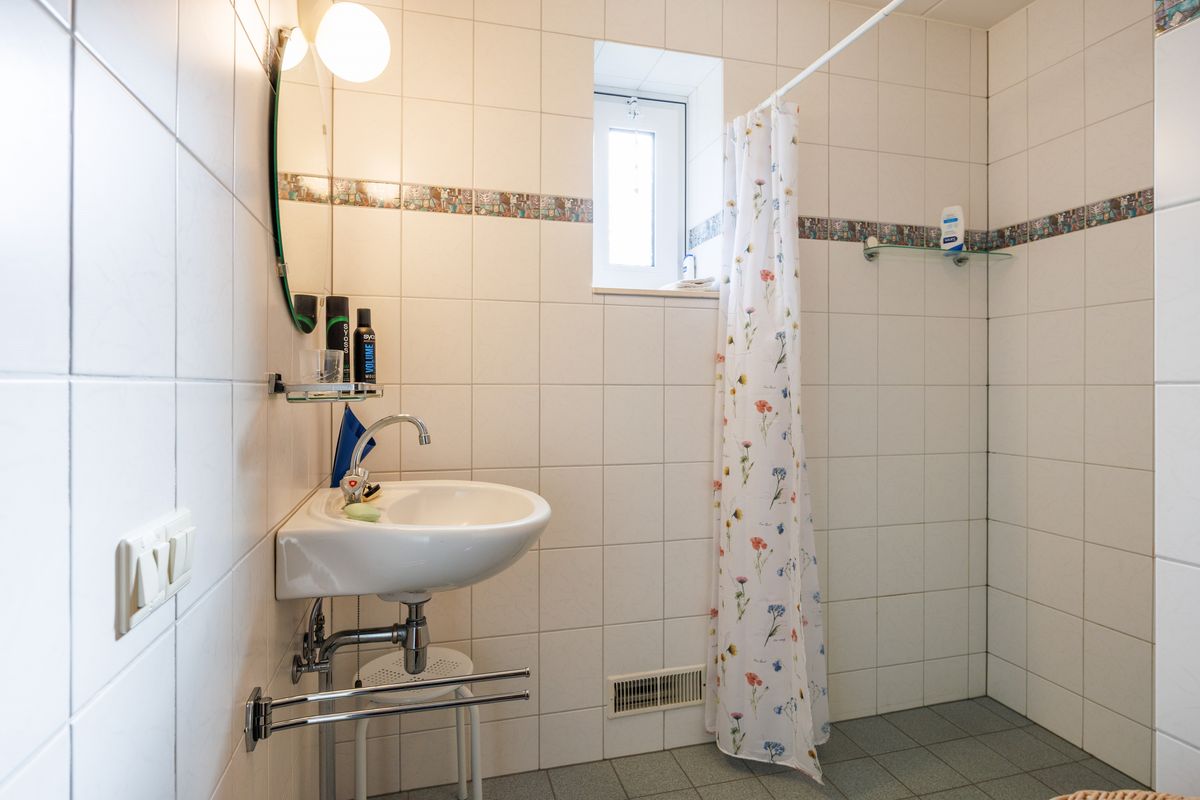 Wat deze woning extra praktisch maakt, is de bijkeuken. Hier vind je de aansluitingen voor je wasmachine en droger – die stapel wasgoed is zo weggewerkt! Maar ook een waterontharder (weg met kalkaanslag!) en de achterentree. Vooral met kinderen of een hond ideaal: vieze schoenen en jassen blijven lekker buiten de woonkamer.
