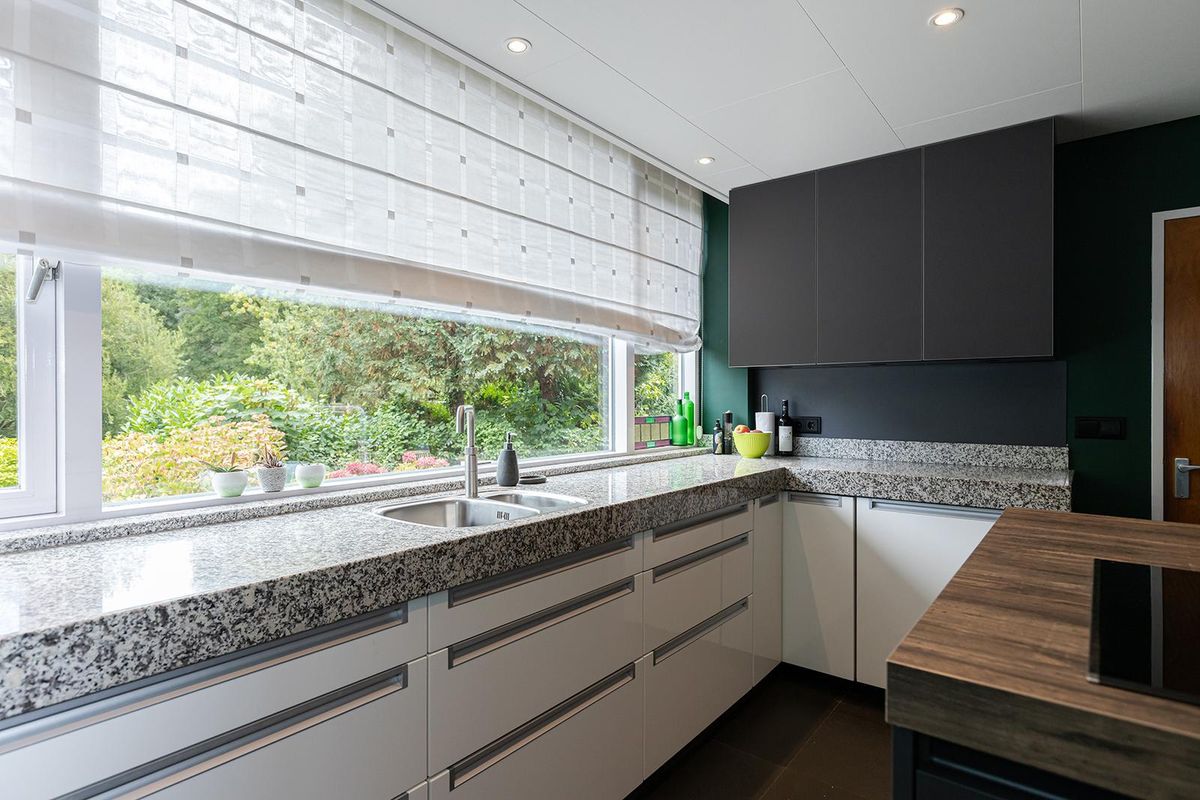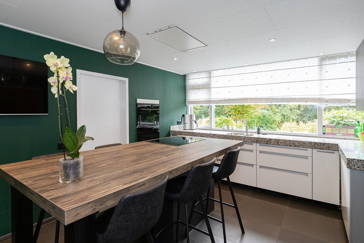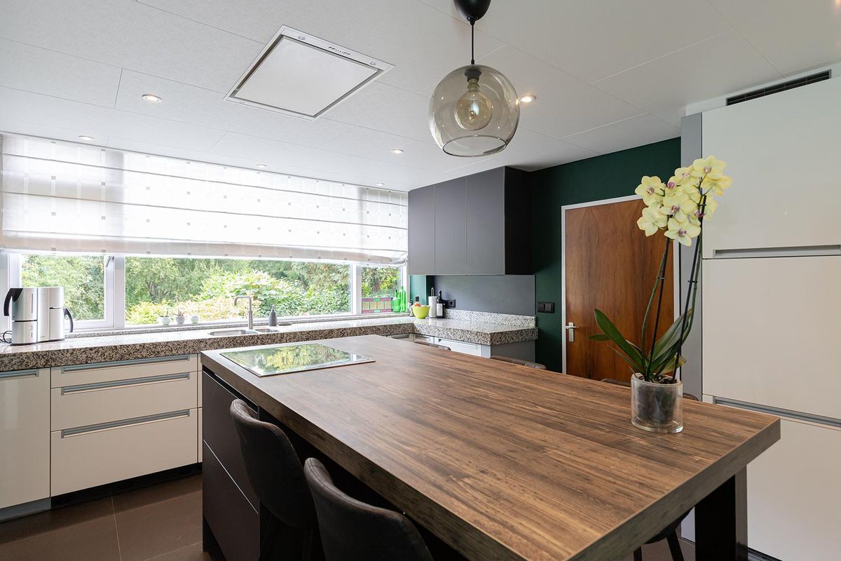 De woonkeuken is een echte blikvanger: modern ingericht en voorzien van een kookeiland, waar koken en gezellig samenkomen centraal staan. Aansluitend vind je een zeer ruime bijkeuken en een aparte wasruimte met praktische kastenwand. Perfect voor extra bergruimte en een opgeruimd huishouden.