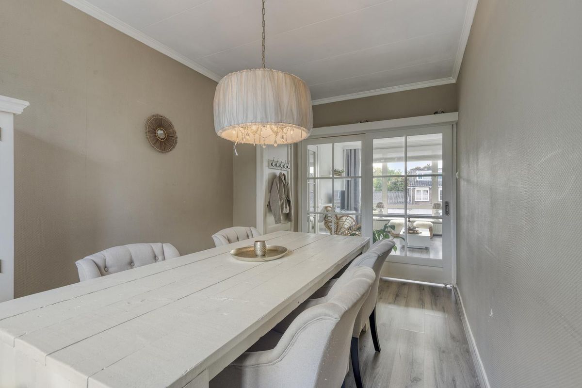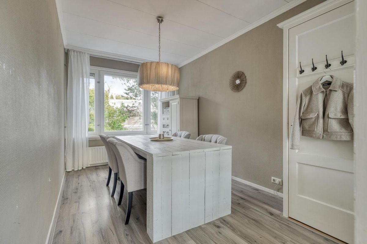 De entree bevindt zich op de begane grond, waarna een trap toegang geeft tot de eerste verdieping. Vanuit de overloop zijn de verschillende vertrekken bereikbaar. Aan de achterzijde ligt de woonkamer van ruim zeventien vierkante meter. Grote raampartijen zorgen hier voor veel licht en geven de ruimte een open en ruimtelijk gevoel. Via ensuite deuren is de eetkamer aan de voorzijde van de woning bereikbaar. Deze kamer meet bijna dertien vierkante meter en biedt volop mogelijkheden voor een grote eettafel of een gezellige zitruimte.