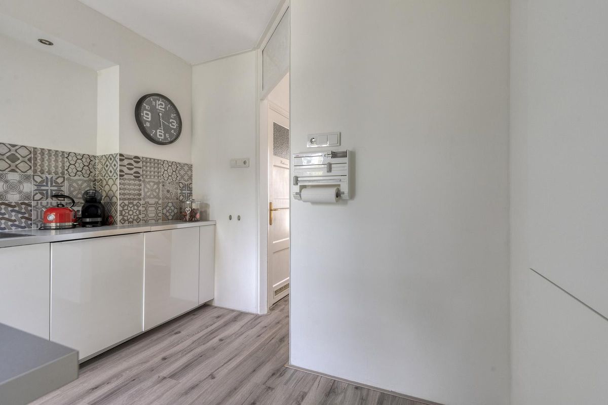 Naast de woonkamer ligt de eerste slaapkamer van ruim negen vierkante meter, praktisch en ruim van opzet. Op de overloop bevinden zich verder een separaat toilet, de badkamer met inloopdouche en wastafel, en de luxe keuken. De keuken is modern ingericht en uitgerust met een vijfpits gaskookplaat, afzuigkap, vaatwasser, koelkast en vriezer. Vanuit de keuken is bovendien toegang tot het balkon. De gehele verdieping is voorzien van een fraaie laminaatvloer die de ruimtes een warme uitstraling geeft.