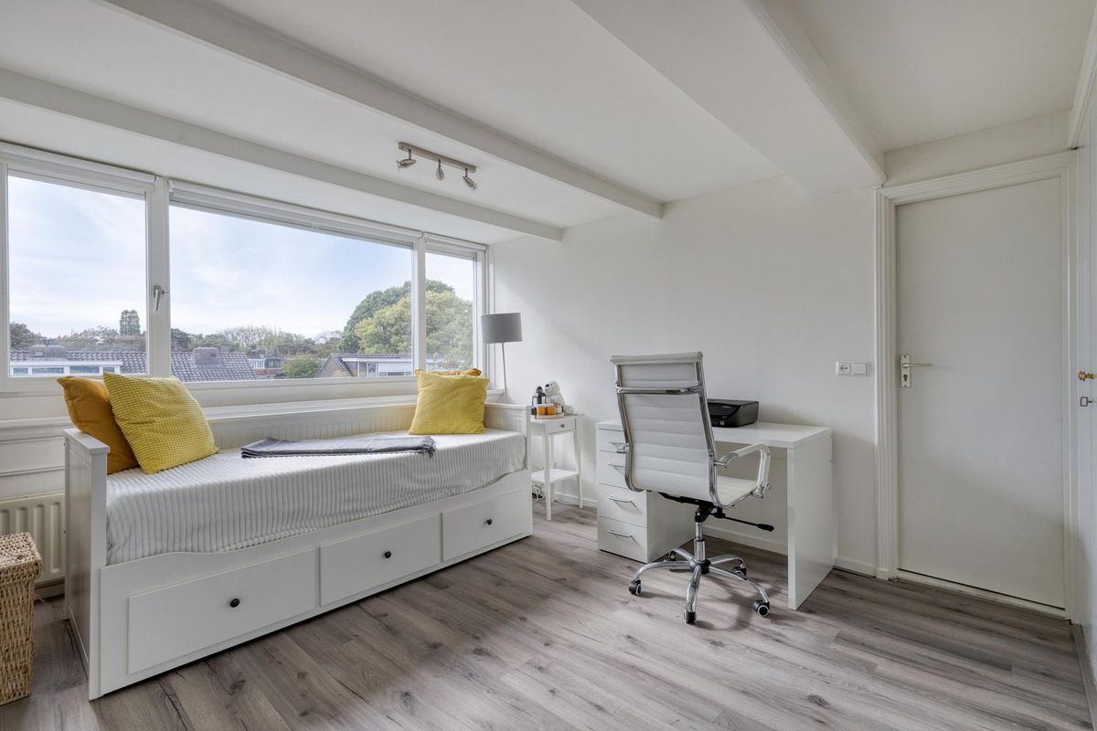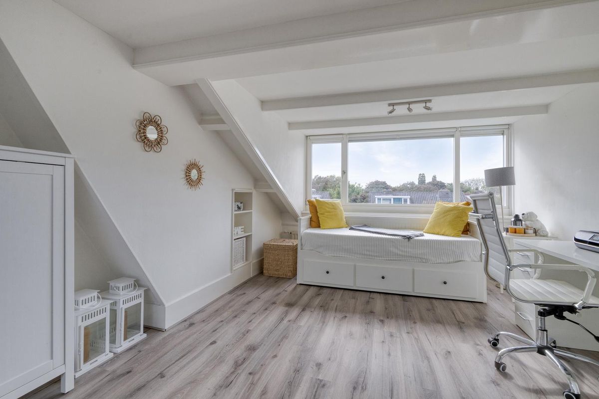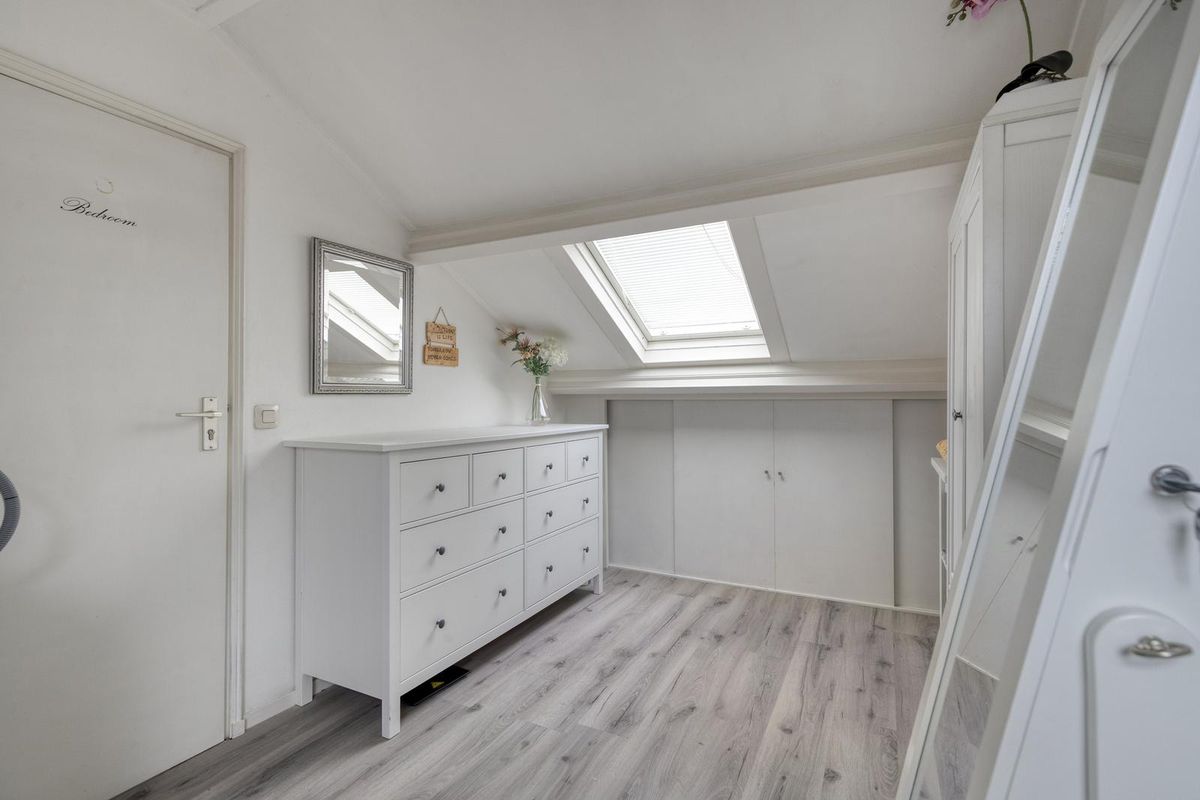 De trapopgang loopt door naar de tweede verdieping. Hier bevindt zich een ruime overloop met de opstelplaats voor de wasmachine en droger en veel praktische kastruimte. Vanuit de overloop is de tweede slaapkamer bereikbaar. Deze kamer, met een oppervlakte van veertien vierkante meter, is voorzien van een dakkapel waardoor de ruimte licht en ruimtelijk aanvoelt. De gehele bovenverdieping is in 2024 opnieuw geisoleerd.