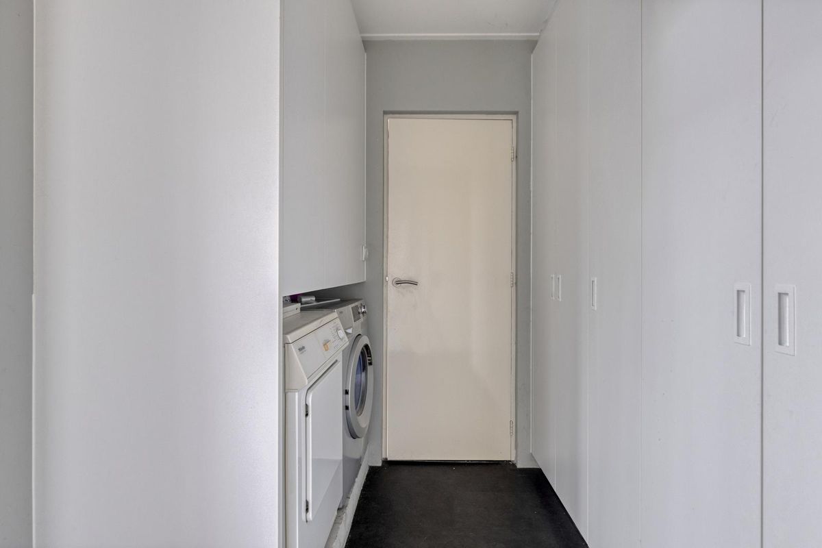 De keuken is apart maar praktisch ingedeeld en voorzien van alle apparatuur die je nodig hebt. Achter de keuken vind je nog een bijkeuken met ruimte voor wasmachine en droger – handig! – én toegang tot de tuin.