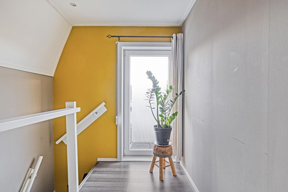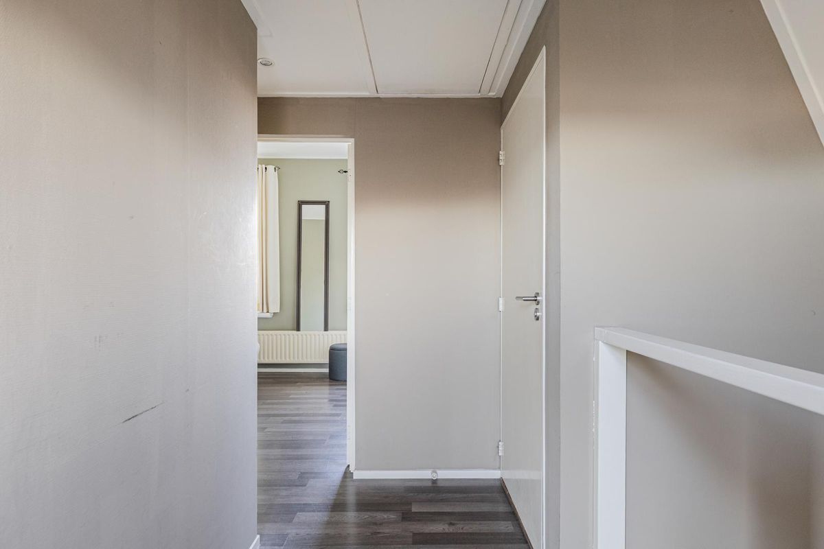 Boven zijn er twee slaapkamers, waaronder een ruime master. De tweede kamer kun je gebruiken als kinderkamer, thuiswerkplek of dressing. Op de verdieping is bovendien een tweede toilet, wel zo comfortabel. En heb je meer spullen dan je kwijt kunt? Geen zorgen, de bergzolder biedt uitkomst.
