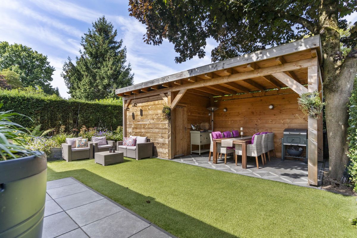 Tijdens het koken kijk je uit op de rustige ruime tuin, die via de openslaande deuren toegankelijk is. De tuin ligt op het westen, wat zorgt voor heerlijke avonden in de zon! Dankzij de overkapping kan je altijd een schaduwplekje vinden en ook met minder weer van de tuin genieten. De tuin beschikt naast de veranda ook over een extra berging.