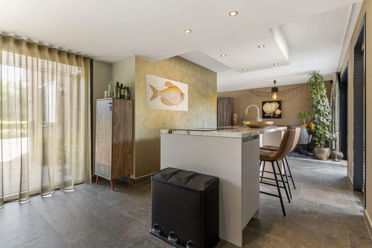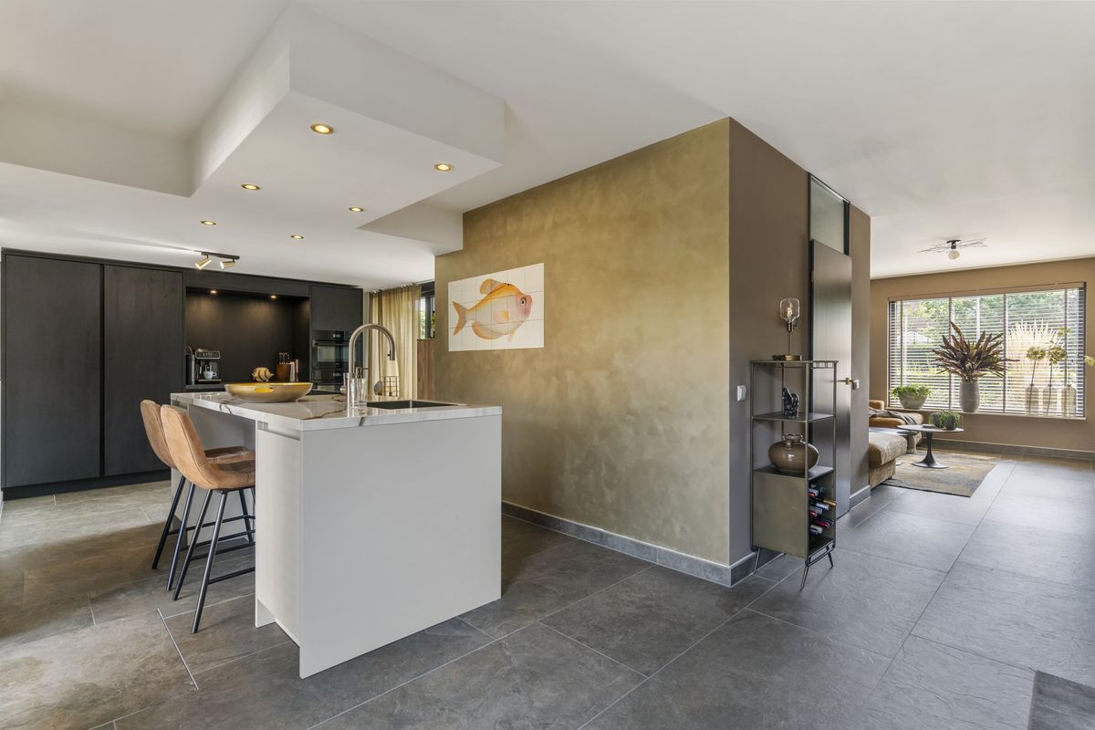 Stap binnen en ervaar direct de luxe van deze woning. Vanuit de hal kom je binnen in de ruim opgezette woonkamer, met de luxe inrichting en nette afwerking voelt dit meteen als thuis. Ook bevindt zich hier de open keuken mét kookeiland! Iedereen die van koken houdt, kan zich hier helemaal uitsloven. De keuken is volledig vernieuwd in 2022 en voorzien van een wasbak met Quooker, natuurstenen blad, inductiekookplaat met afzuigsysteem, combimagnetron, (stoom)oven, vaatwasser, een koel-vriescombinatie en ingebouwde spots. Echt een plaatje!