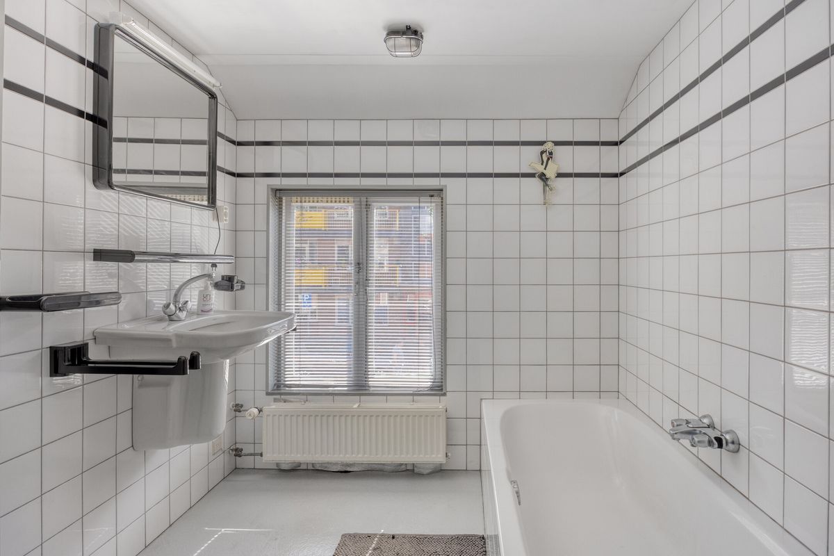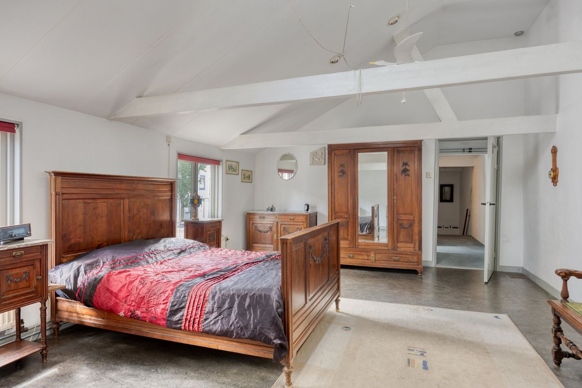 Overloop met toegang tot 2 slaapkamers en de badkamer. De eerst slaapkamer is bijzonder ruim en heeft leuke dakspanten in het zicht. De tweede slaapkamer is een kleinere kamer. De badkamer is voorzien van een ligbad, douche, toilet en wastafel.