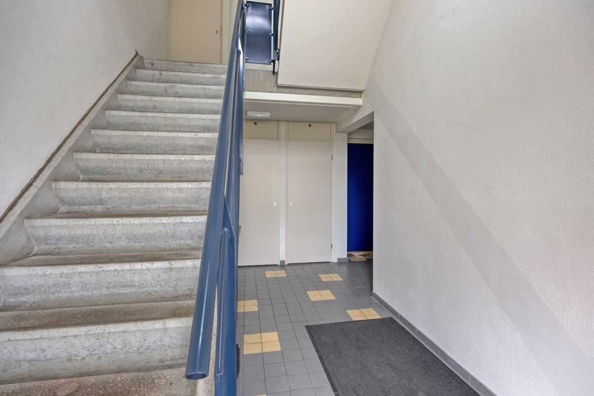 Op de begane grond van dit kleinschalige complex komt u binnen in de nette centrale hal waar u het bellentableau vindt, de brievenbussen, het trappenhuis en de toegang naar de appartementen.