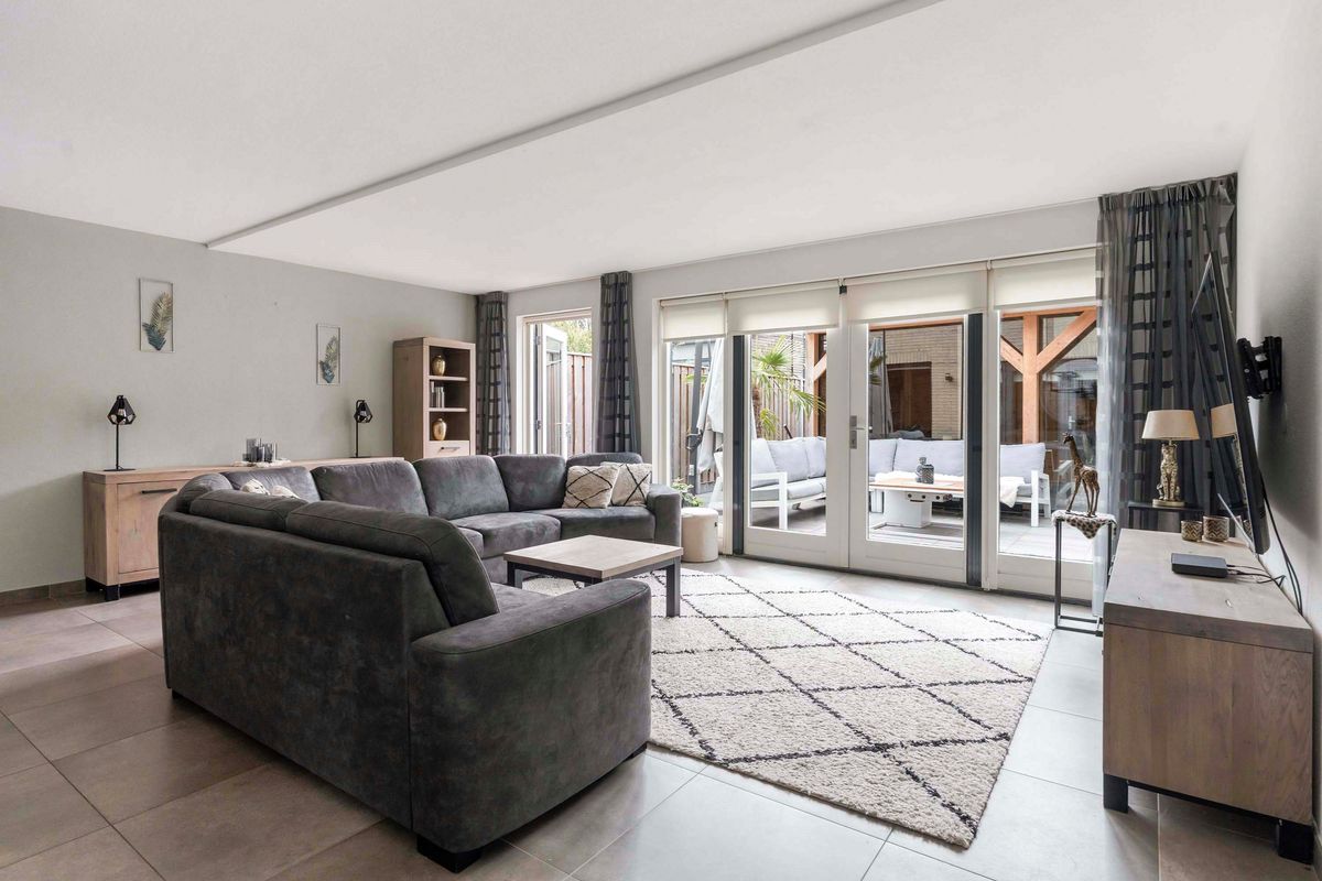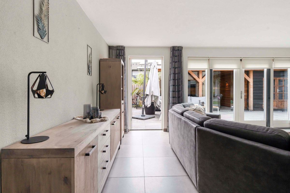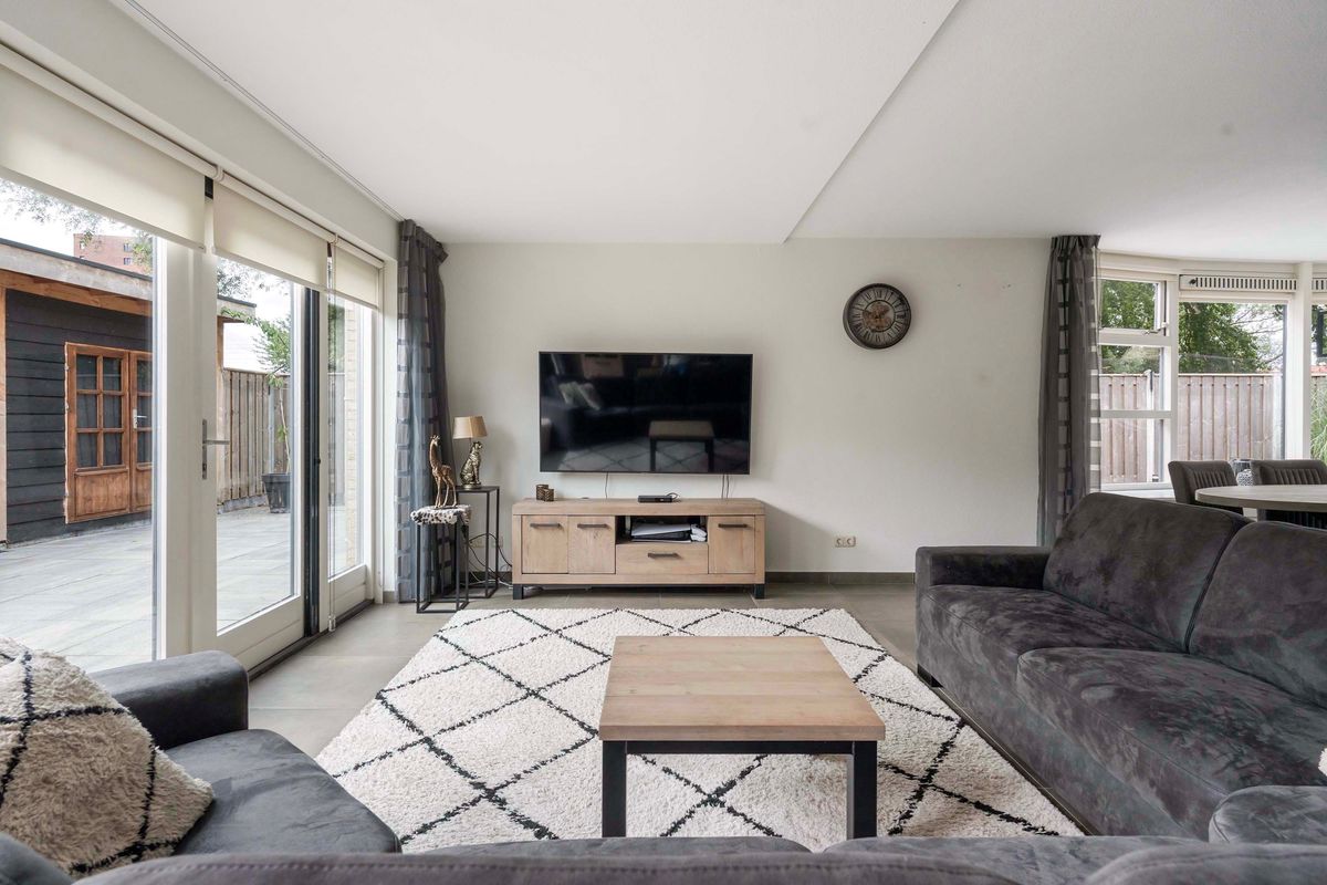 Wat direct opvalt is de ruime woonkamer (29 m2) met directe toegang tot de zonnige achtertuin met tuinkamer.